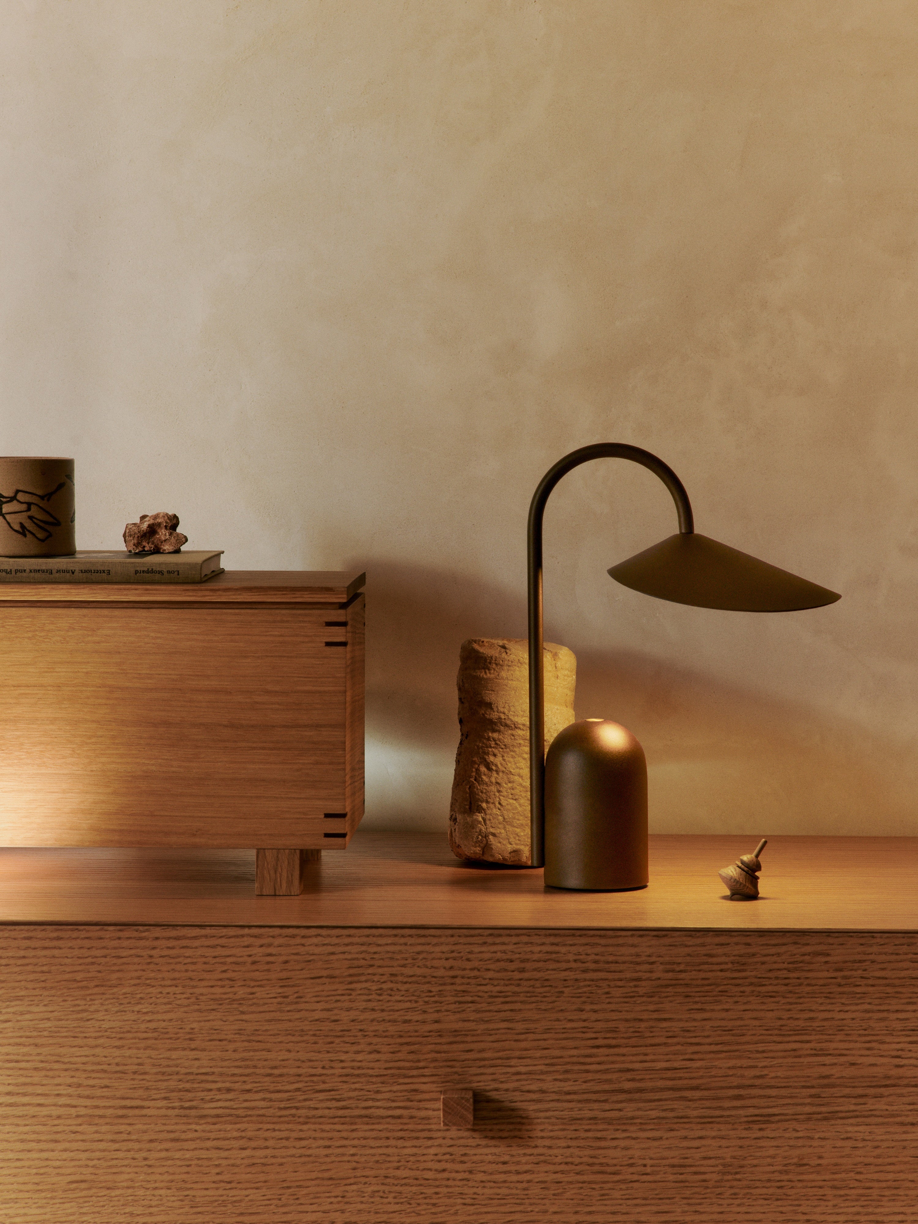 Die tragbare Arum-Leuchte ist eine vielseitige und mobile Beleuchtungslösung. Diese zierlich kleine LED-Lampe ist über USB-C aufladbar, sodass sie überall verwendet werden kann, um ein gemütliches Ambiente zu schaffen.