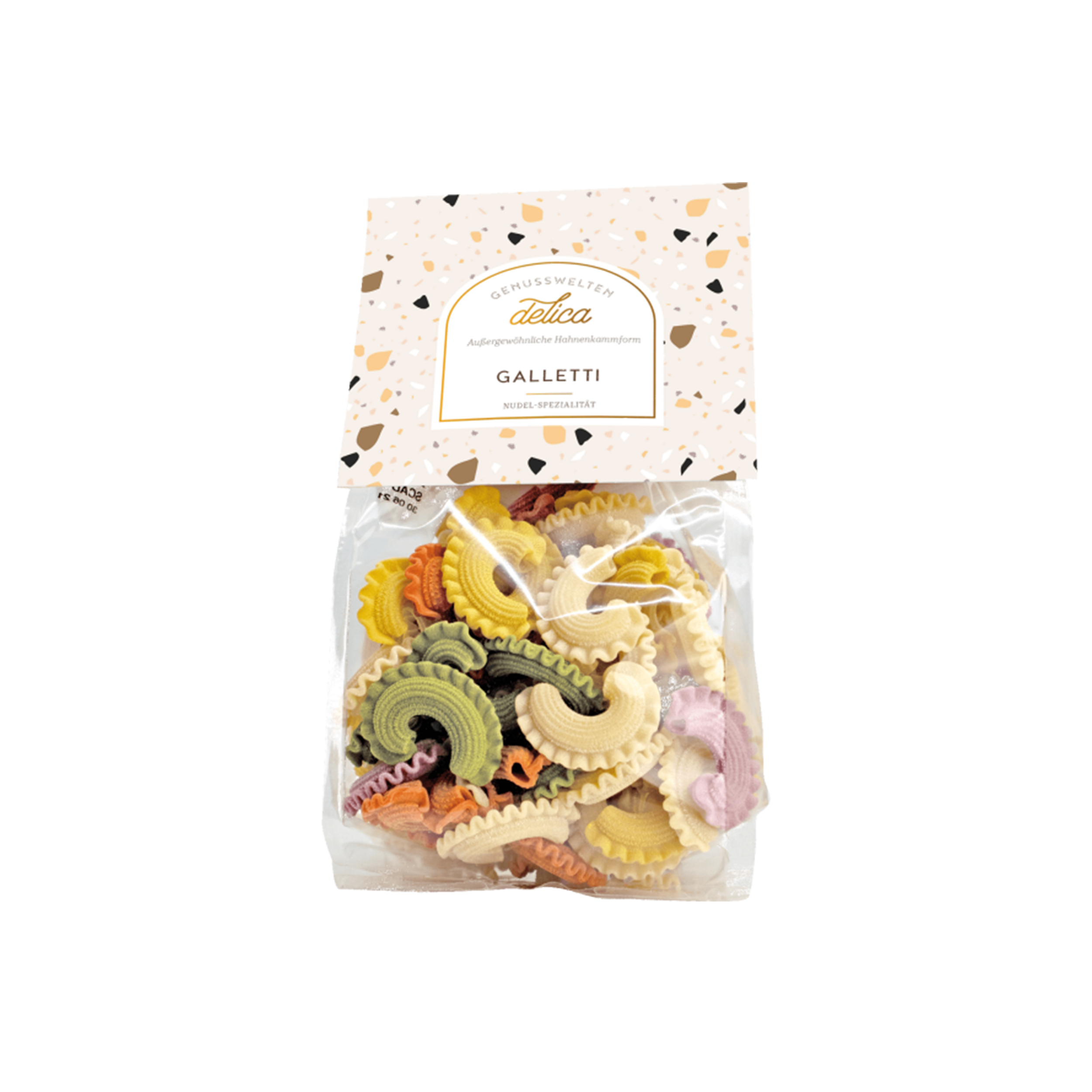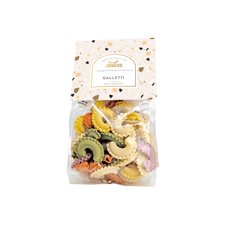 In the Apulia region, known for its culinary delights, our delicately flavored pasta is made according to traditional Italian recipes. It combines full flavor with the finest ingredients. The pasta is drawn using bronze tools and then dried for many hours at low temperatures. Only carefully selected, high-quality, and natural ingredients are used. This unusual pasta shape is reminiscent of a rooster's comb.