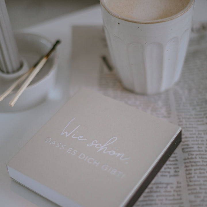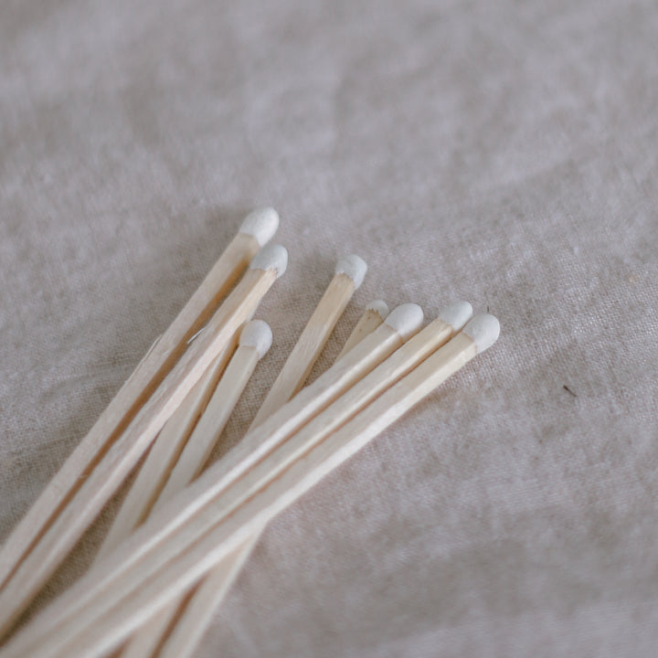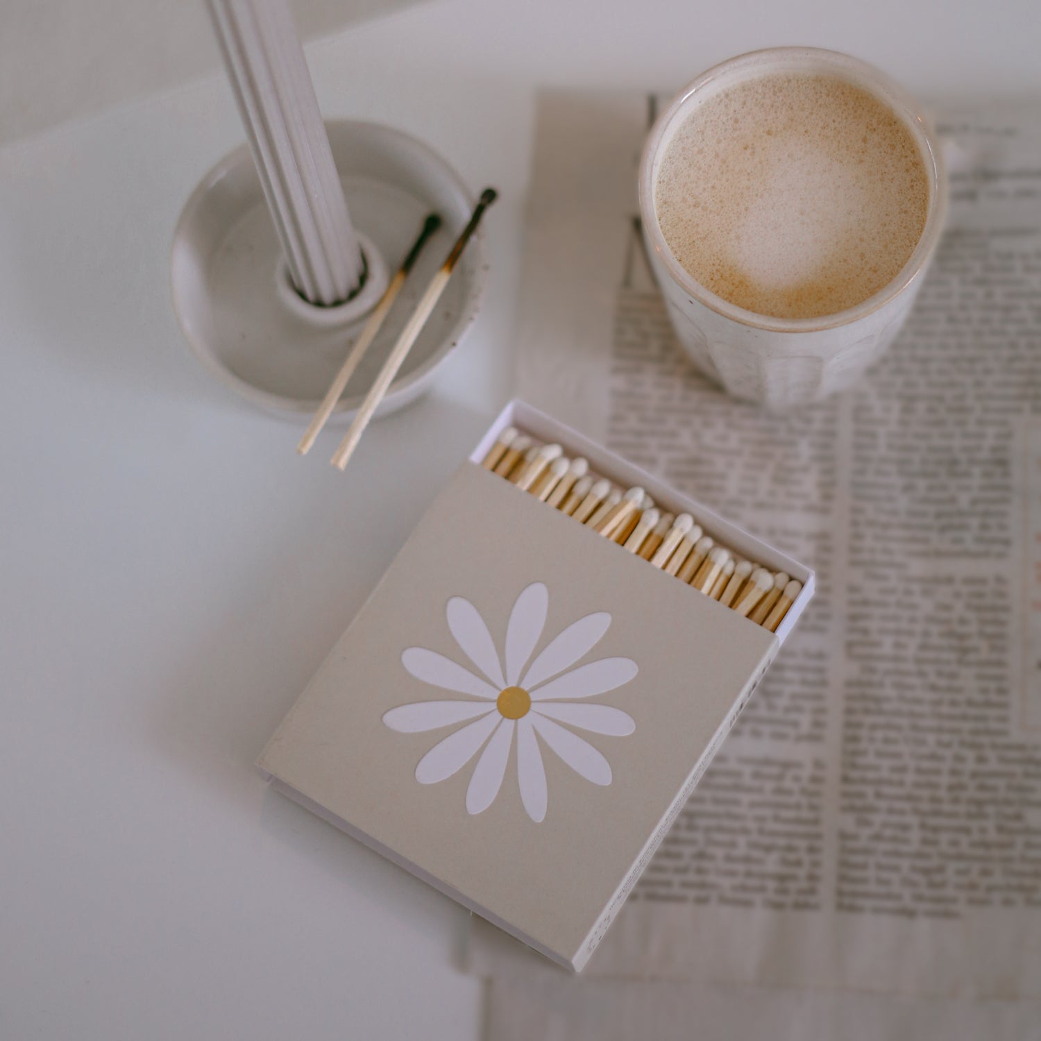 The Daisy matches feature a wonderfully simple design with elegant blind embossing. The inside of the flower is enhanced with gold hot foil stamping. The other side is adorned with the phrase "How wonderful that you exist." The matches have a white striking head.