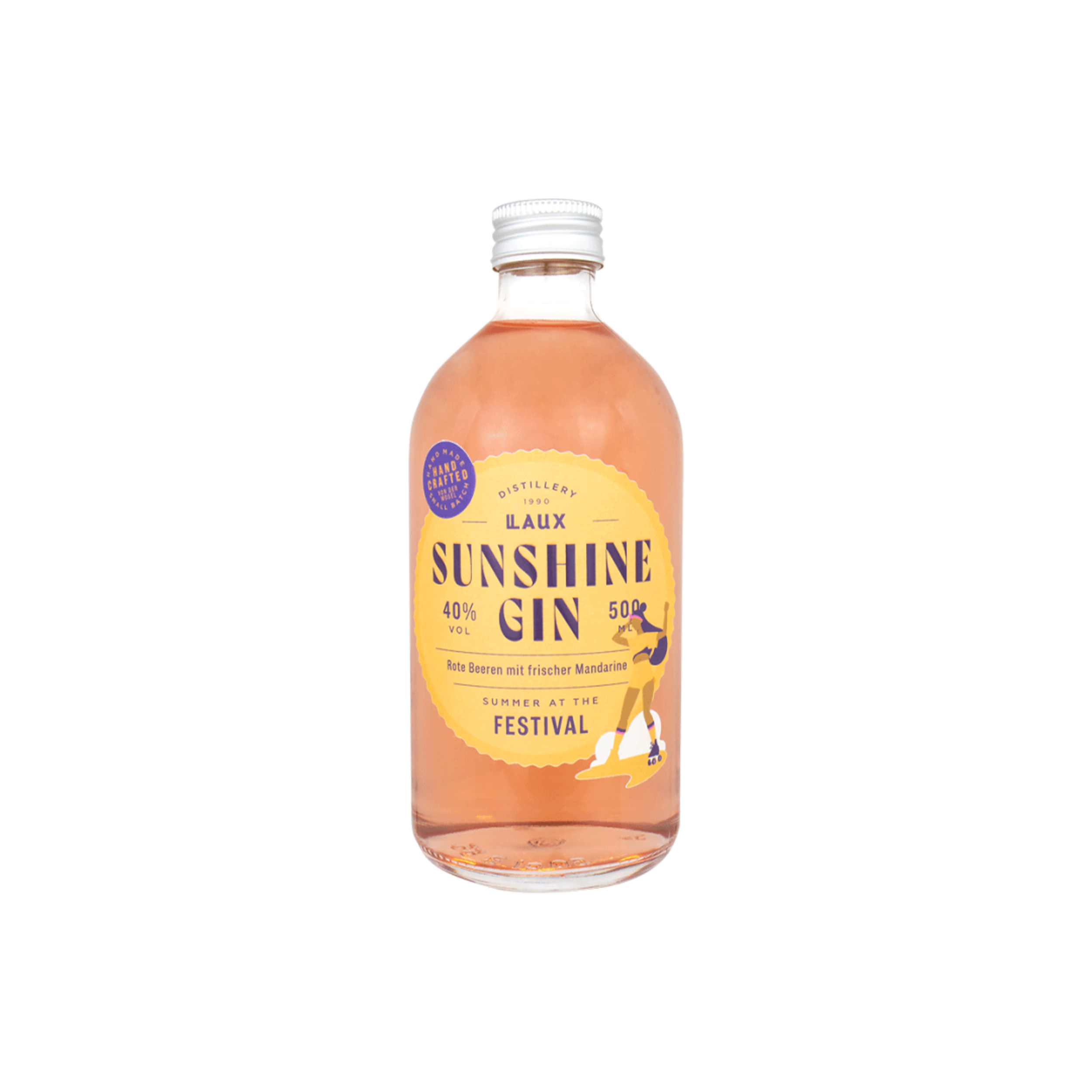 The extra-berry LAUX Sunshine Gin - Summer at the Festival delights with enticing and vibrant citrus aromas of fresh mandarin and lemon. Combined with the sweetness of currant and cranberry, an exciting interplay of flavors emerges, which is perfectly appreciated neat over ice or in a summery gin and tonic with fruity tonic water. The light pink summer gin also brings a strong burst of berry freshness to cocktails.