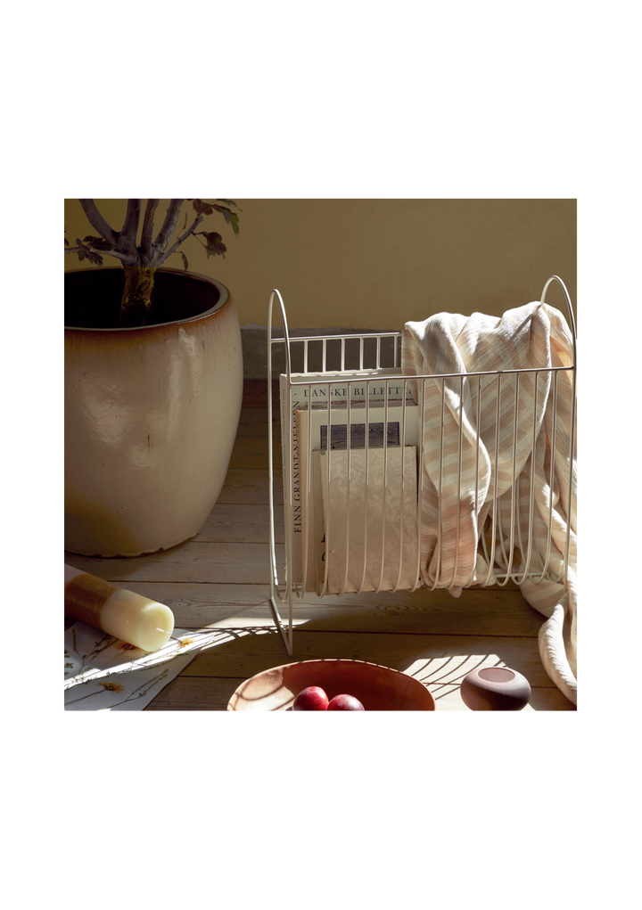 Maggie von Broste Copenhagen ist eine zeitgemäße und praktische Aufbewahrungsmöglichkeit für Zeitschriften, Bücher oder Deko. Ihre minimalistische und runde Formsprache ist von Zeitungsständern der 70er Jahre inspiriert und macht sich in modernen und klassischen Interieur-Stilen hervorragend.