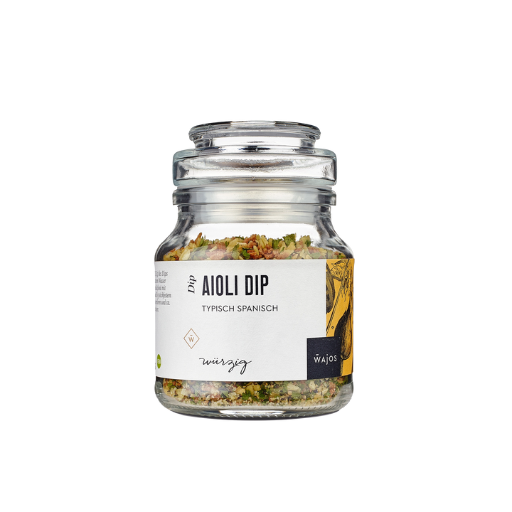 Der Klassiker unter den Dips. Der Torero der spanischen Küche. Würzig, kräftig und besonders vielseitig darf der Aioli Dip mit Knoblauch in keiner Küche fehlen. Einfach mit Mayonnaise und Joghurt anrühren und genießen: zu Kartoffeln, Gemüse, Fisch oder Fleisch. Einfach lecker: auf geröstetem Brot.