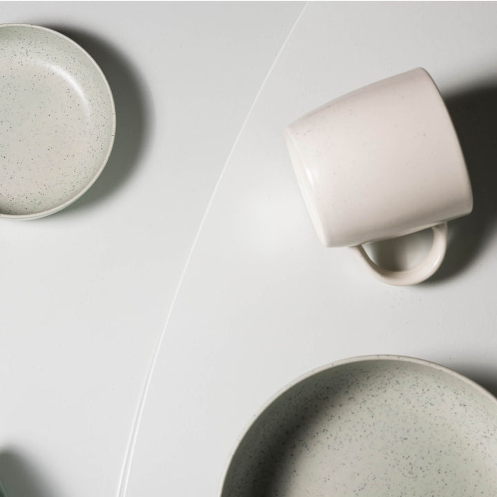 ist du bereit für einen stilvollen Schluck? Darf ich vorstellen: unser großer Becher (36 cl) in der Farbe Vanille aus der schönen Dot-Familie! Aus robustem Porzellan gefertigt, bringt dieser Becher einen Hauch von Spaß in Ihre tägliche Kaffee- oder Teeroutine. Jeden Morgen 12,5 cm pure Freude - und dazu noch mikrowellen- und spülmaschinengeeignet. Als Teil der lebendigen DOT-Kollektion lässt sich diese Tasse nahtlos mit Tellern und Schüsseln kombinieren und sorgt für ein schickes, minimalistisches Erscheinungsbild. Warum also warten? Genießen Sie die einfachen Freuden des Lebens mit dieser verspielten Tasse an Ihrer Seite!