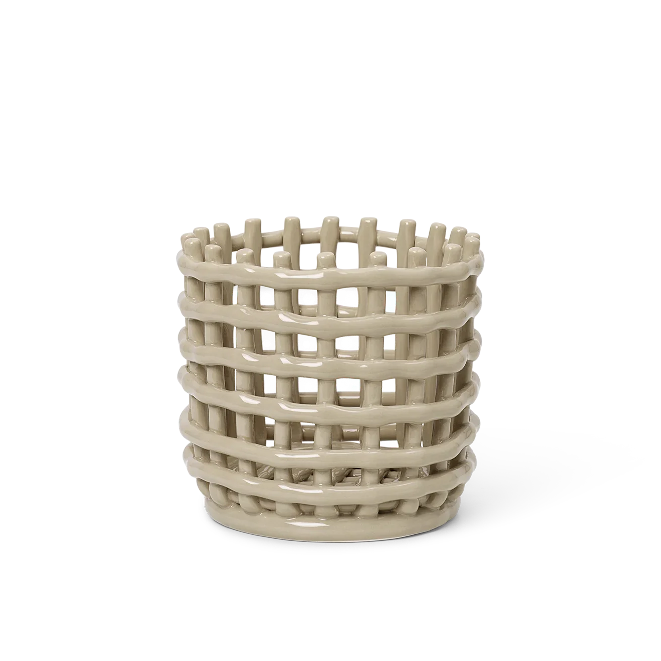 Das multifunktionale Design kann als Blumentopf, Obstschale oder als dekorativer Mittelpunkt in einem Raum verwendet werden. Die von Hand geformten und auf kunstvolle Art uneben gefertigten Körbe sind jeweils einzigartig.