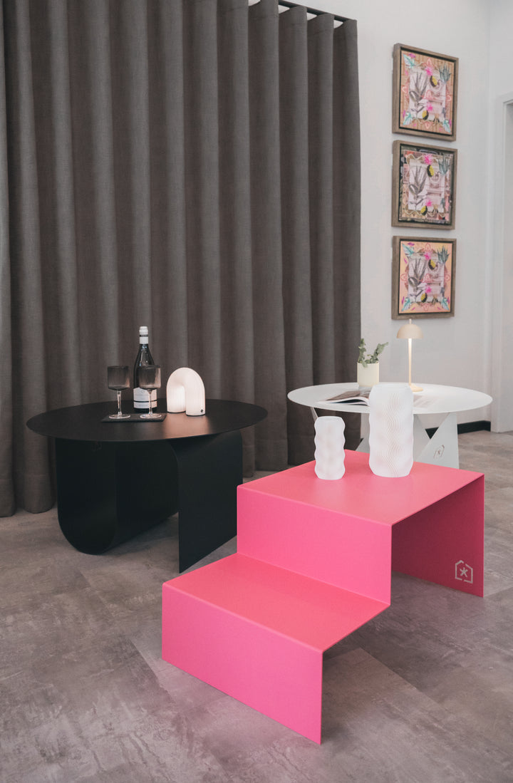 Mit seinem markanten, geschwungenen Untergestell setzt der Couchtisch WAVE neue Maßstäbe im modernen Möbeldesign. Die Kombination aus geometrischer Präzision und weich fließender Form verleiht ihm eine elegante Leichtigkeit und macht ihn zu einem Blickfang in jedem Raum – ob drinnen oder draußen.