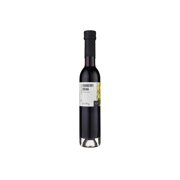 Der besondere Geschmack süß-herber Cranberrys zeichnet diese Crema aus. Mit der typisch dunklen Balsamico-Note und einem fein-fruchtigen Charakter passt sie ideal in kräftige Salatdressings und zu einer gemischten Käseplatte.
