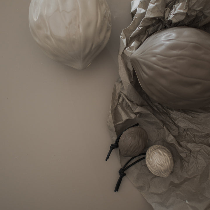Die Anhänger aus Keramik von dem Skandi Label DBKD passen hervorragend zu jedem Wohn- und Einrichtungsstil und sehen sowohl am Christbaum als auch an einem Ast wunderschön aus. Du kannst die Walnüsse auch toll in Schalen oder einem Kranz dekorieren.