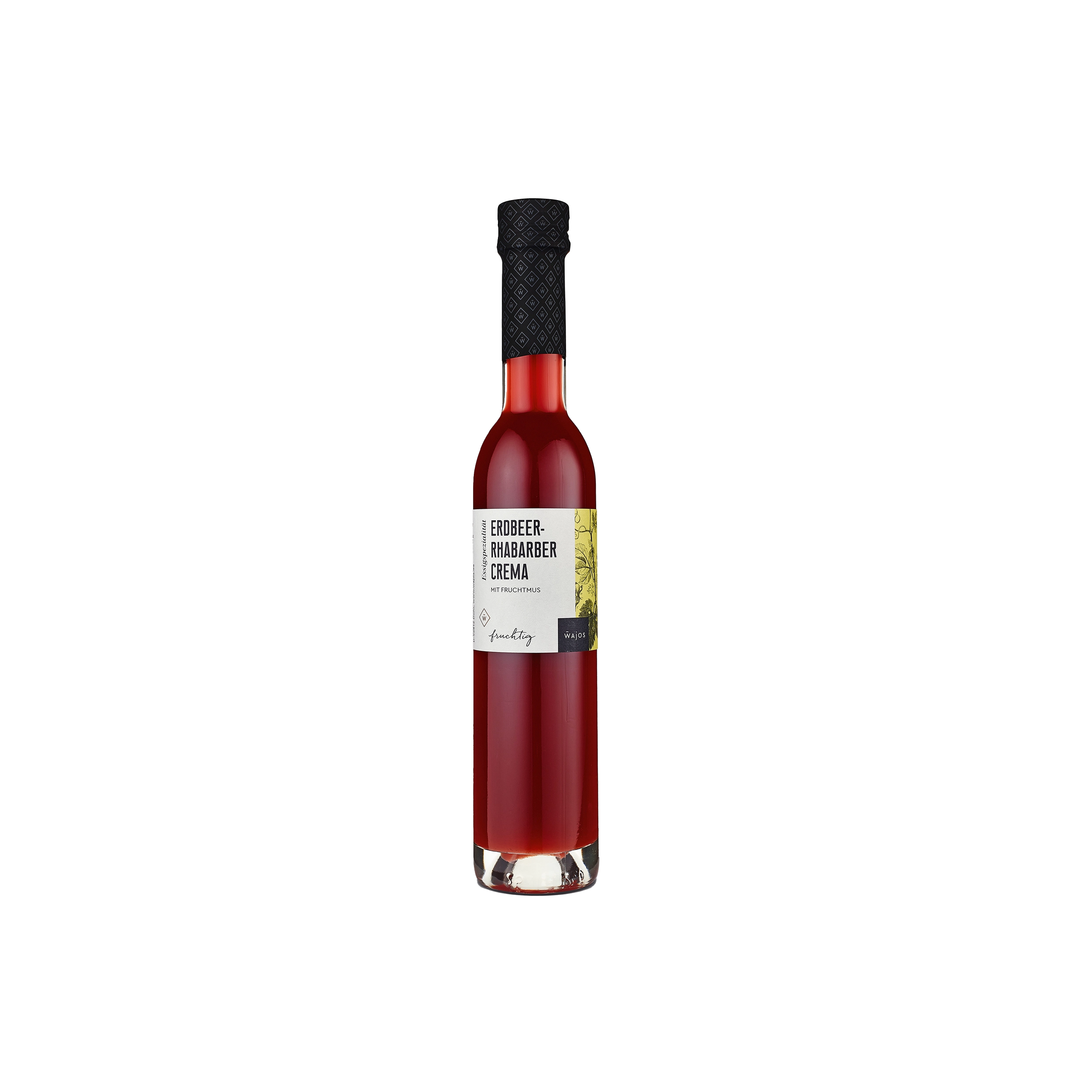 Der Geschmack süßer Erdbeeren kombiniert mit den fein-sauren Noten von Rhabarber. Diese cremige Essigspezialität verfeinert fruchtige wie auch deftige Salate und ist durch den hohen Fruchtanteil ein genussvolles Topping für Eis.