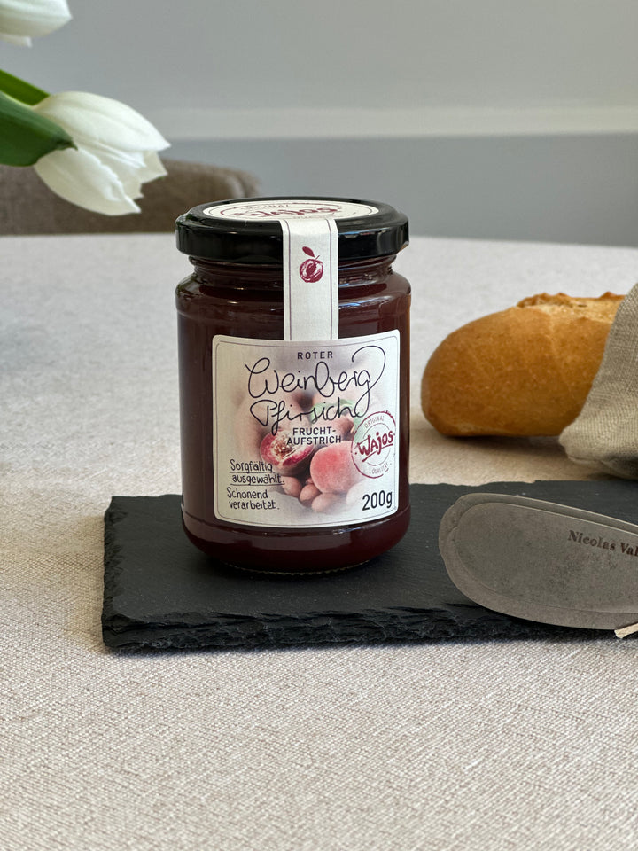 Ein außergewöhnliches Aroma- und Geschmackserlebnis. Vollreife, von Hand geerntete Rote Weinbergpfirsiche werden erntefrisch und schonend, bei niedrigen Temperaturen, verarbeitet. Fruchtig-süß und fein-herb dominieren Geschmack und Aroma der edlen Frucht.
