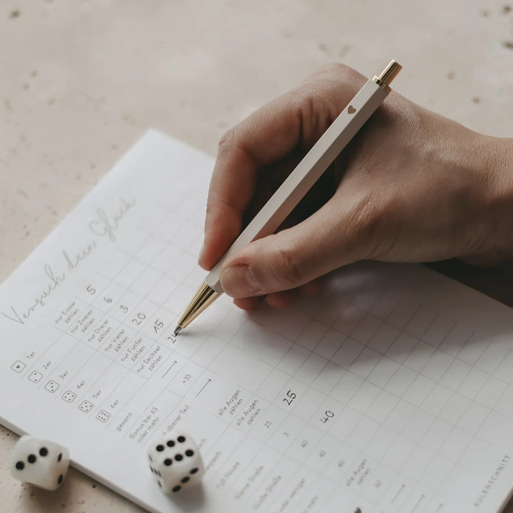 Ob im Meeting, beim Schreiben deiner Gedanken oder als schickes Accessoire auf deinem Schreibtisch – dieser Kugelschreiber bringt Freude und Stil in jede Situation.
