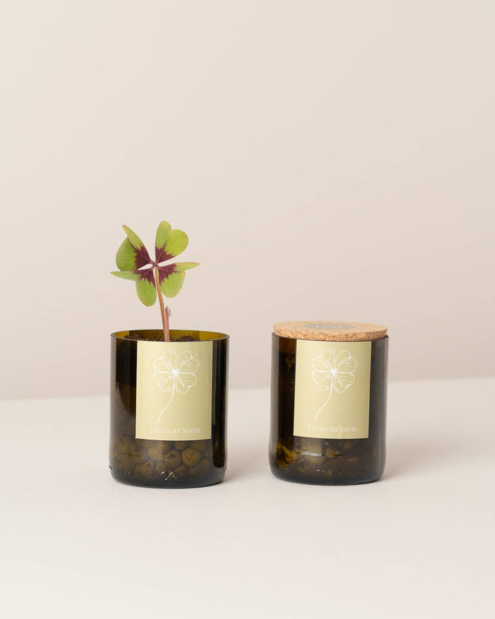 Ein Bottle Garden ist eine recycelte Weinflasche mit einem Korkverschluss, die alles enthält, damit Sie die Freude am Säen, Pflegen und Wachsen von vierblättrigen Kleeblättern erleben oder verschenken können, ein Zeichen des Glücks! Dies ist ein einfaches und unterhaltsames Kit, um Freunde oder Familie zu überraschen und Zuneigung zu zeigen. Es ist das ideale Geschenk für besondere Anlässe oder um Kinder in eine lehrreiche und unterhaltsame Aktivität einzubeziehen.