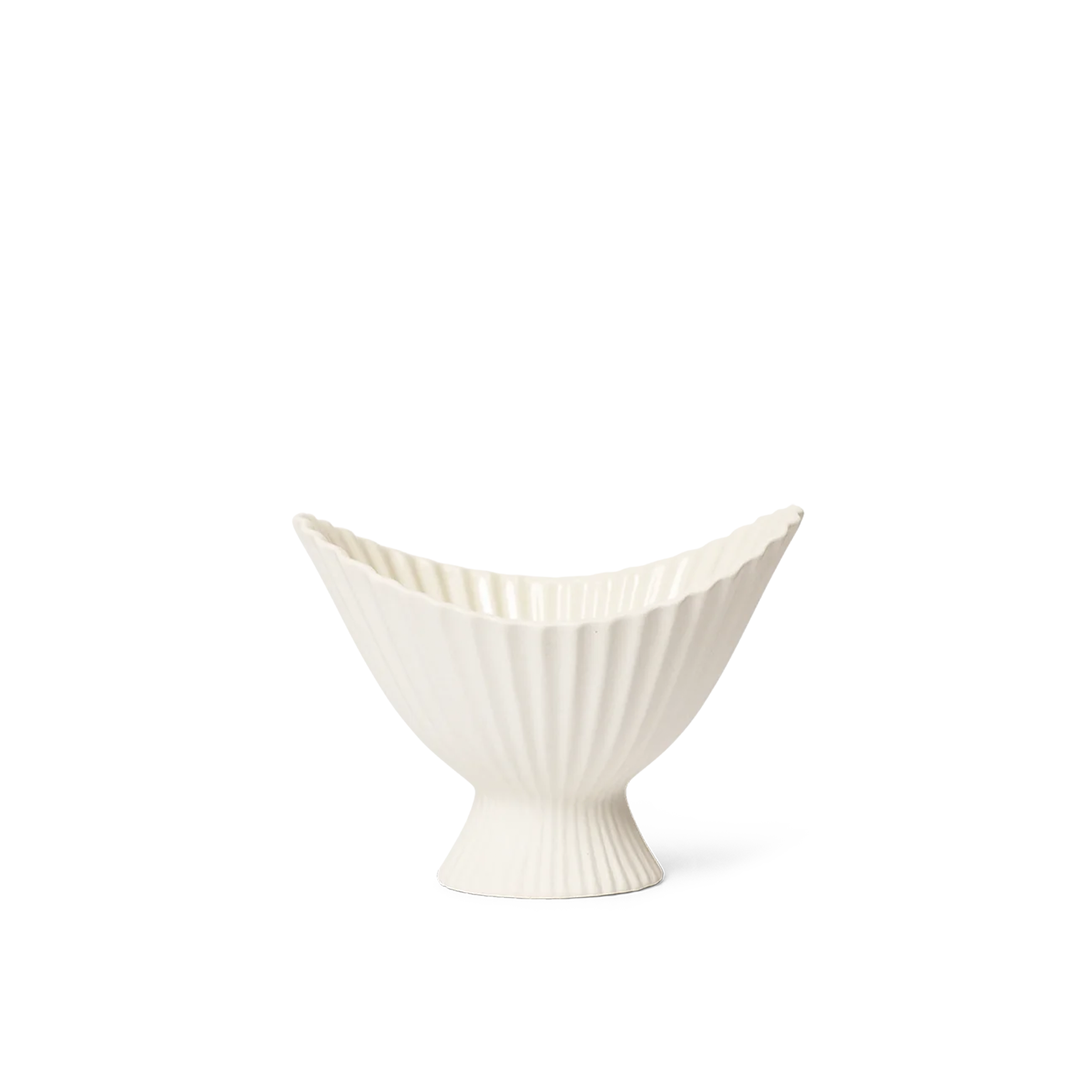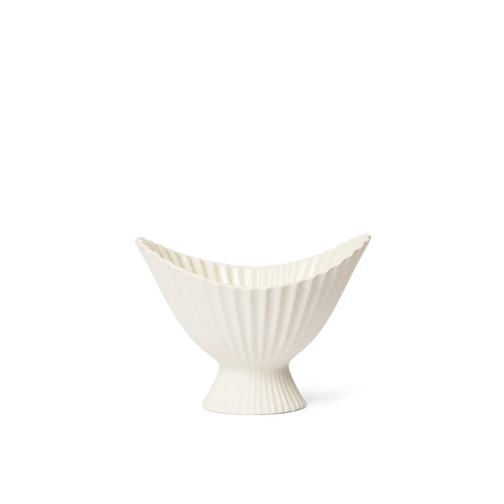 Die skulpturale Fountain-Schüssel aus Keramik fällt durch ihre weiche, gefältelte Optik sofort ins Auge. Die Schüssel, die sich für die Aufbewahrung einer Vielzahl verschiedener Gegenstände eignet, ist außen matt und hat innen eine klare Glasur.