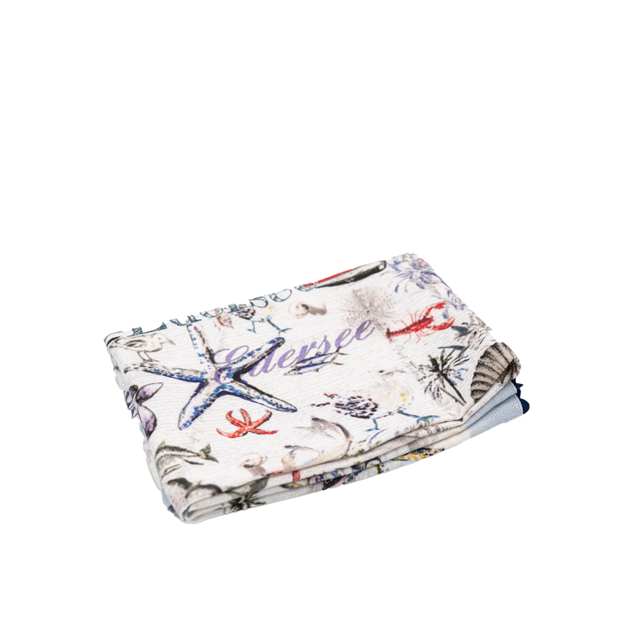 Entdecke das elegante Geschirrtuch aus der Kollektion Edersee von Ninibing 34. Dieses ausgefallene Küchenaccessoire besticht durch seine zarten, hellen Farbtöne, die jedem Raum eine frische und freundliche Atmosphäre verleihen. Das Geschirrtuch ist mit einer hübschen kleinen dunkelblauen Wellenborte verziert, die dem Design eine elegante und verspielte Note verleiht. Perfekt für alle, die stilvoll und einzigartig kochen und den Küchenbereich mit einem besonderen Akzent aufwerten möchten!