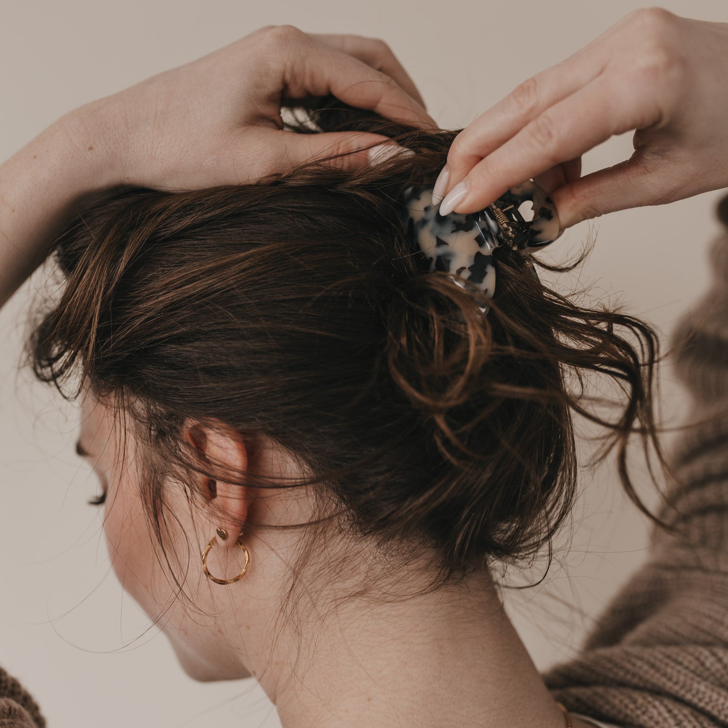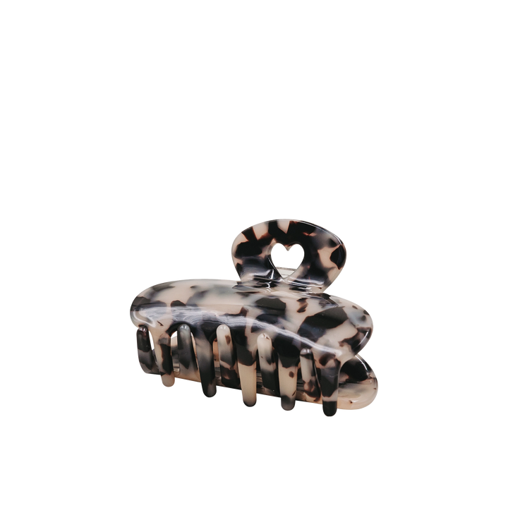 Unsere große Haarspange Herz Leo vereint stilvolle Eleganz mit praktischer Funktionalität. Ihr marmoriertes Finish in warmen Braun- und Schwarztönen macht sie zu einem zeitlosen Accessoire, das sich mühelos in jeden Look integrieren lässt.