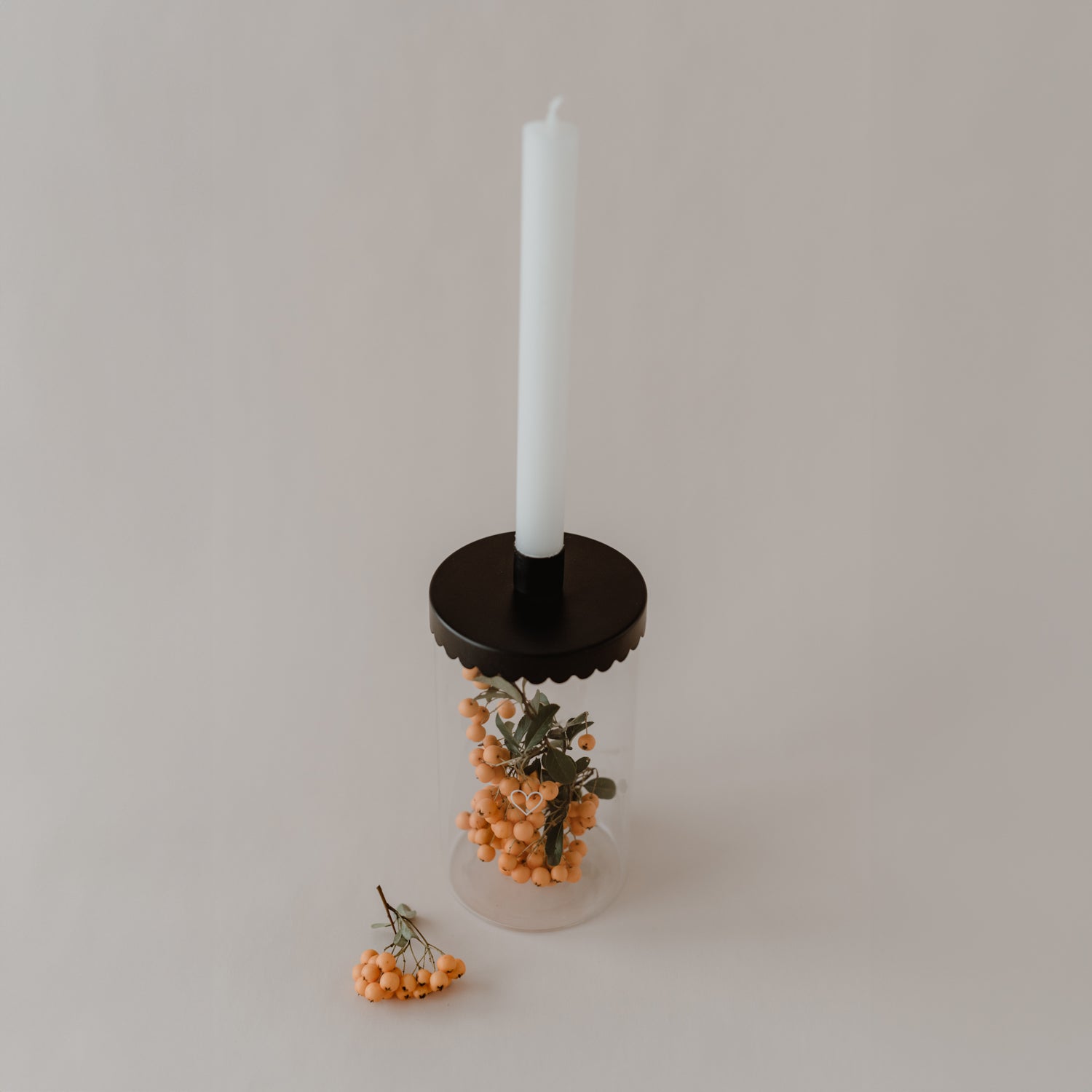 Mit dem Kerzenhalter schwarz Welle passend für die Vorratsgläser wird deine Tischdeko einzigartig.