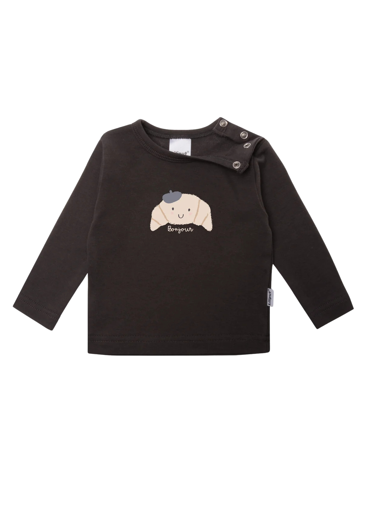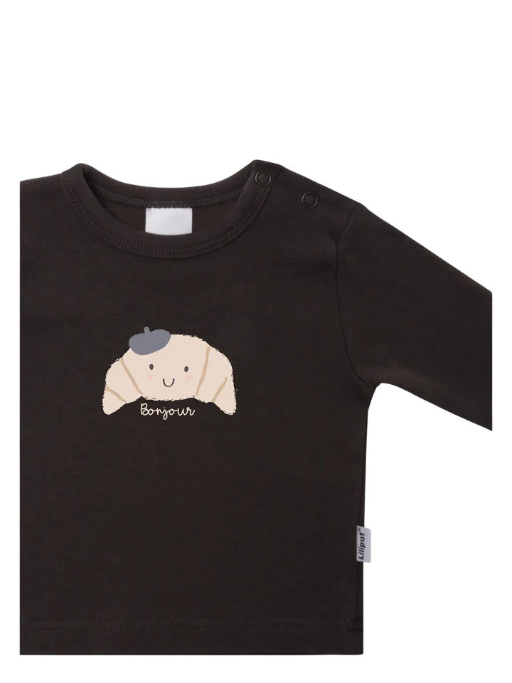 Das perfekte Kindershirt für alle, die für ihre Kinder den idealen Mix aus Komfort, Stil und Spaß suchen, ist das neue Shirt mit dem entzückenden Croissant-Print ein absolutes Must-have. Durchdacht gestaltet, verfügt es über zwei praktische Druckknöpfe auf der Schulter, die das An- und Ausziehen besonders einfach und angenehm machen – ideal für Eltern und kleine Entdecker.