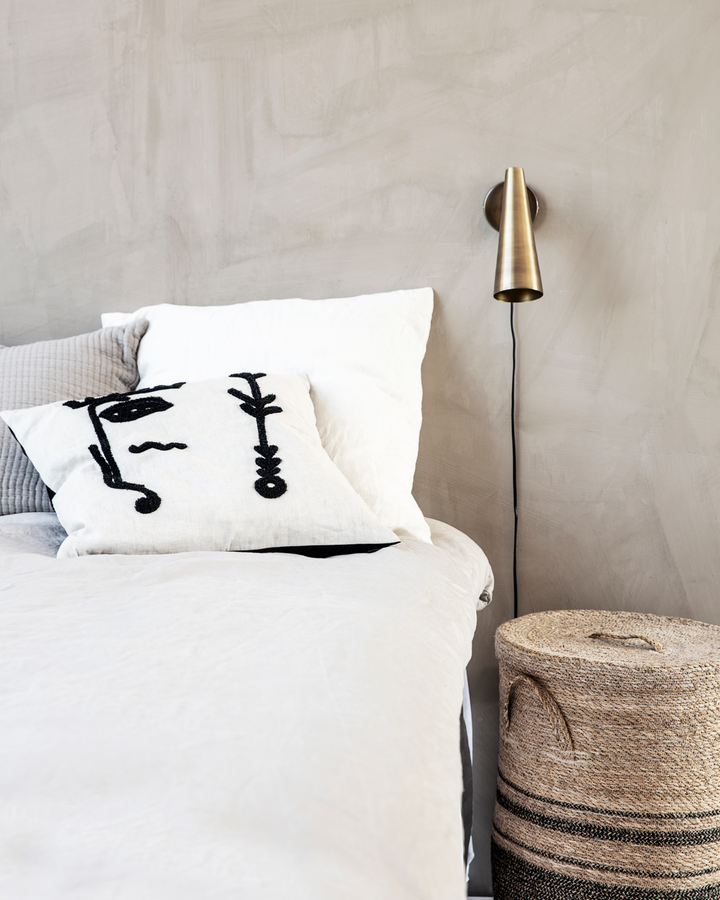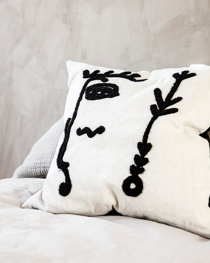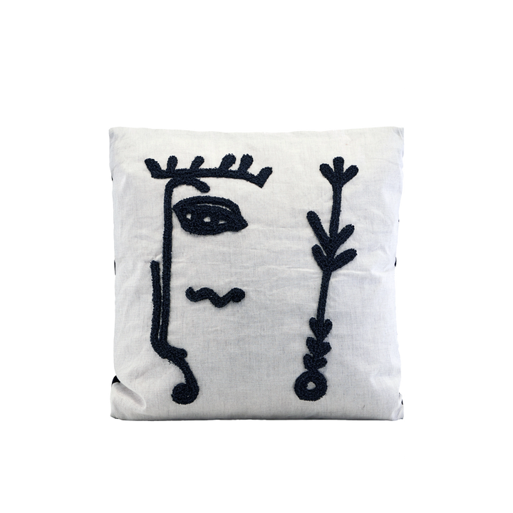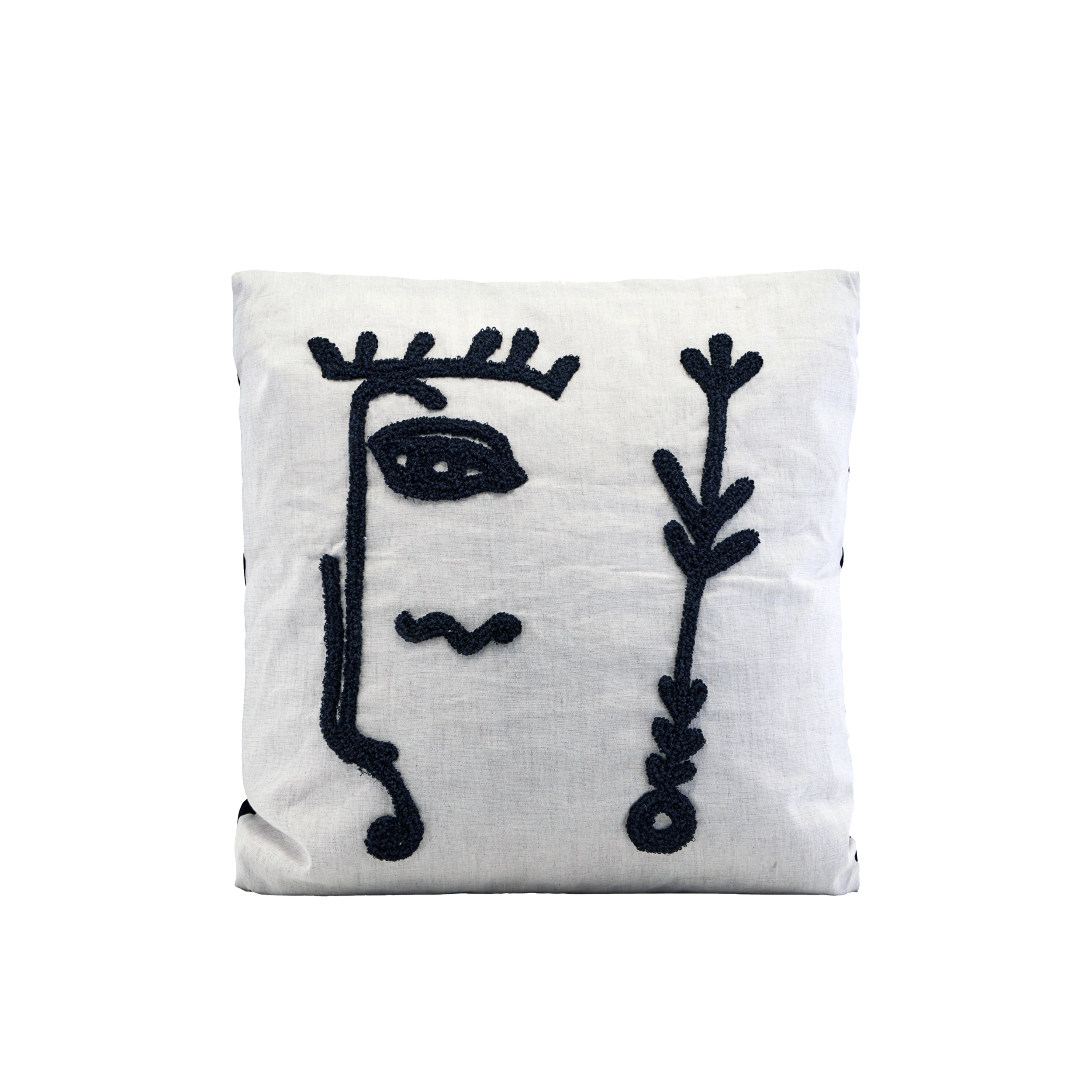 Ein schöner Kissenbezug mit einem einzigartigen Ausdruck. Ingo von House Doctor ist ein quadratischer Kissenbezug mit einer Höhe und Länge von jeweils 50 cm. Der Kissenbezug ist in einem hellen Beige-Farbton gehalten und mit der Silhouette eines Gesichtes in einem schwarzen Farbton versehen. Kombinieren Sie den Kissenbezug mit weiteren Kissen in verschiedenen Farben und Formen.