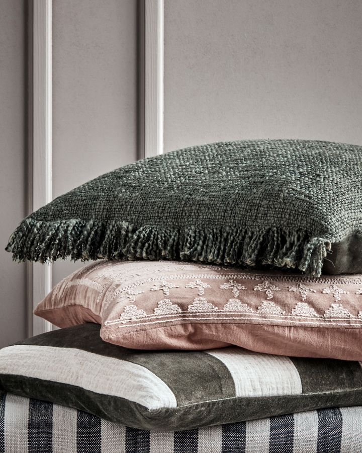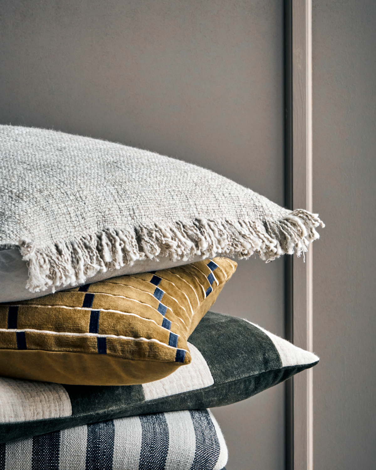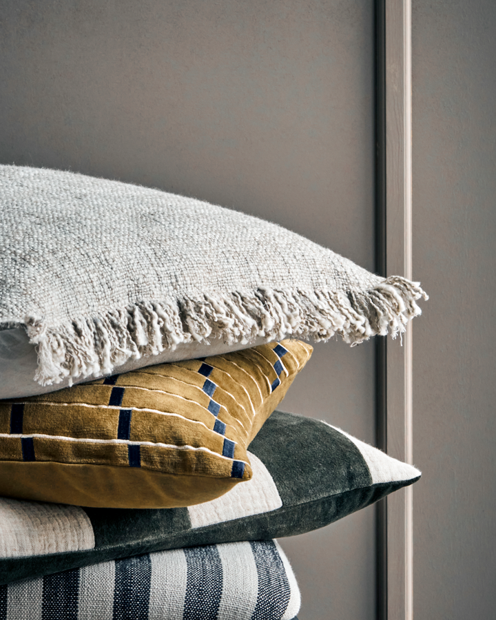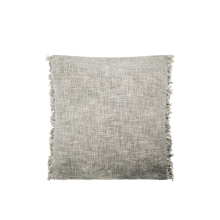 Dieser handgefertigte Kissenbezug aus einer Mischung aus Baumwolle, Leinen und Lyocell verleiht Ihrem Sofa oder Bett einen unkonventionellen Touch. Die beige Farbe und die gefransten Kanten schaffen einen rustikalen, aber eleganten Look, der perfekt zu jedem gemütlichen Zuhause passt.