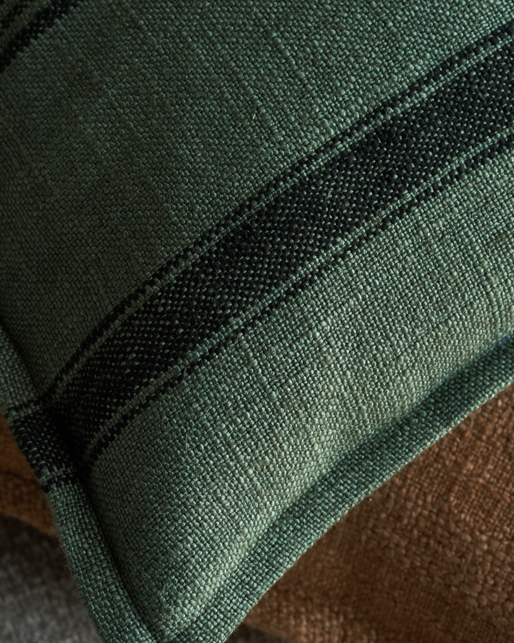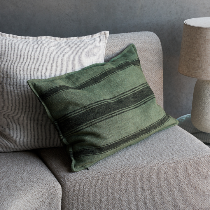 Der Suto-Kissenbezug von House Doctor ist auf jeder Couch ein stilvoller Hingucker. Die dunklen Streifen auf grünem Hintergrund ist eine zeitlose und vielseitige Kombination, die eine entspannte und lässige Stimmung schafft. Das kräftige, weiche Gewebe lädt zudem zum Kuscheln ein.