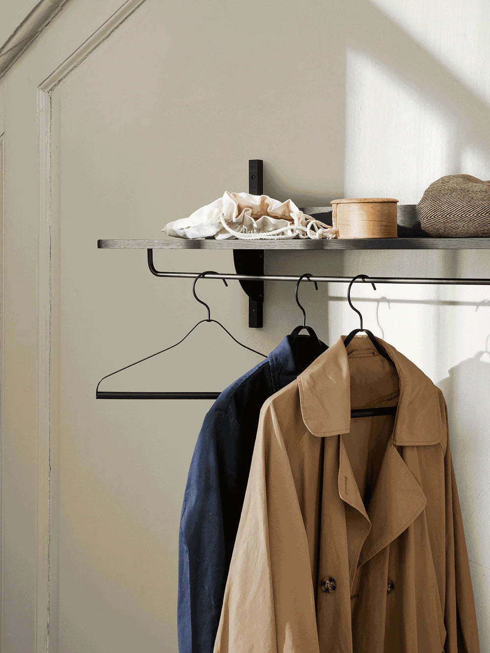 Mit ihrer Kombination von pulverbeschichtetem Metall und schwarzgebeiztem Holz präsentiert dieser Bügel einen leichten Look, während er auch mit seiner Querstange für Hosen und Schals sehr praktisch ist. Sie können den Haken drehen, wie Sie möchten, damit Sie Ihren Favoriten auf einer Tür oder einem Spiegel aufhängen können.