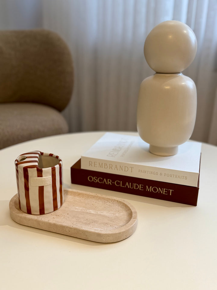 Unser ovales Marmor-Tablett überzeugt durch seine natürliche Schönheit und seine klare, moderne Form. Gefertigt aus natürlichem Marmor, besticht jedes Stück durch seine individuelle Maserung und feine Farbnuancen – ein echtes Unikat der Natur.