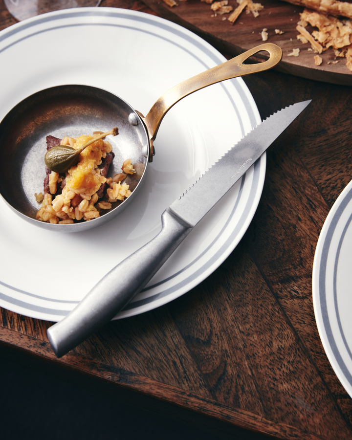 Das 4-teilige Messer-Set Ranch von Nicolas Vahé vereint scharfe Wellenschliff-Klingen mit elegantem Design. Ob zartes Fleisch oder knusprige Kruste – diese Messer gleiten mühelos durch jedes Gericht. Aus einem Stück Edelstahl gefertigt und angenehm in der Hand: Funktional, langlebig und perfekt für stilvolle Dinner.