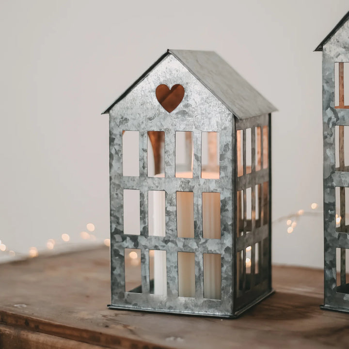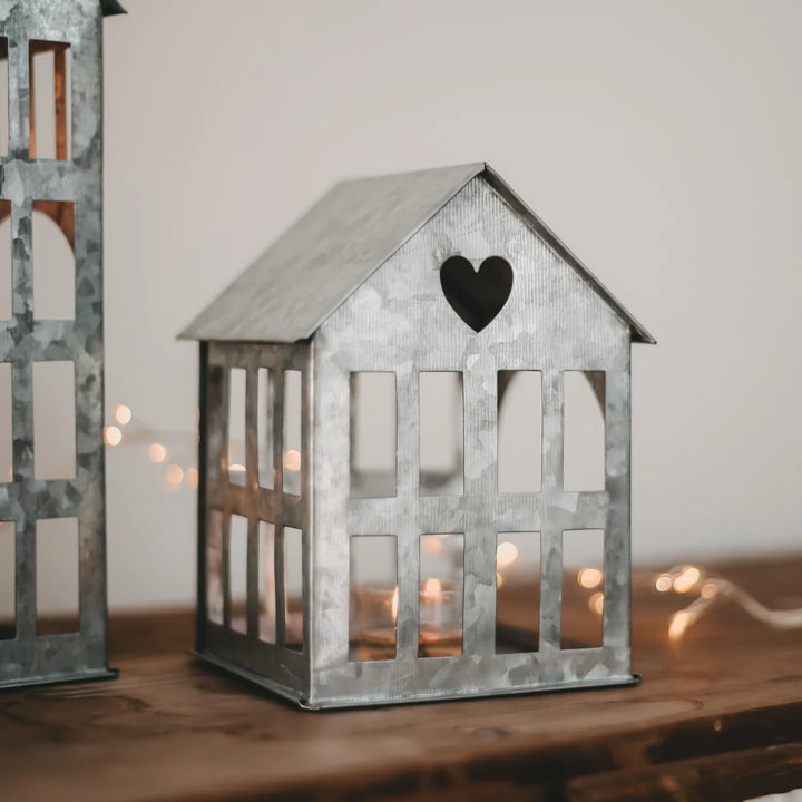 Das Metallhaus bringt zeitlose Eleganz in dein Zuhause. Mit seinem filigranen Design und dem herzförmigen Ausschnitt ist es ein liebevoller Blickfang. Ob mit Lichterkette, Kerze oder pur – es zaubert eine gemütliche Atmosphäre. Erhältlich in zwei Größen.