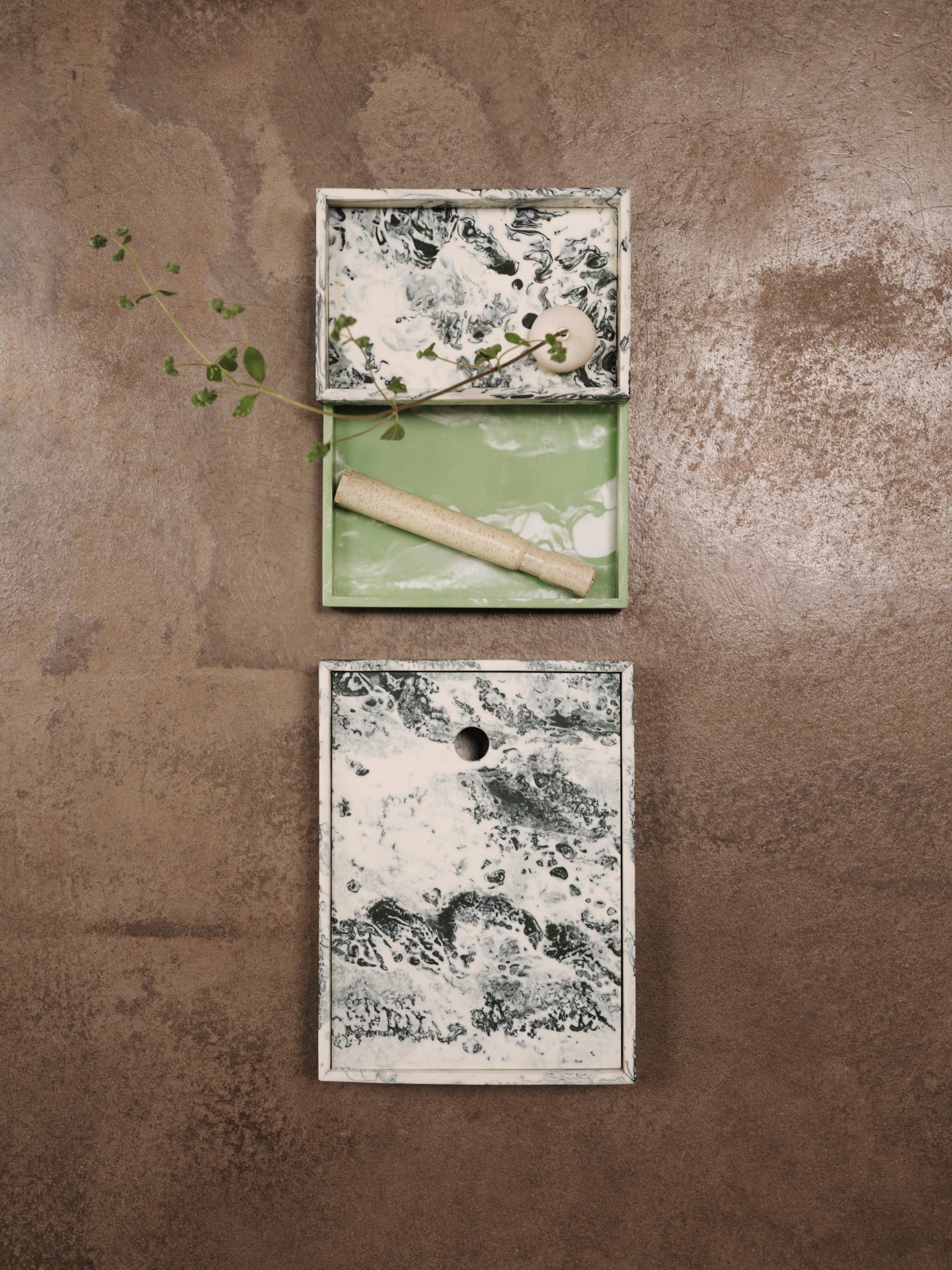 Die Mist Serie bietet einen raffinierten Mix aus verspielter Geometrie und funktionellem Design. Mit jedem Stück dieser verspielten Serie kannst du deine eigene, einzigartige Kombination aus ineinandergreifenden, stapelbaren Formen kreieren. Das aus einem resinmix gefertigte Mist Tablett zeichnet sich durch fließende, wirbelnde Formen und ätherische Farbtöne aus, die jedes Tablett zu einem wahren Unikat machen.