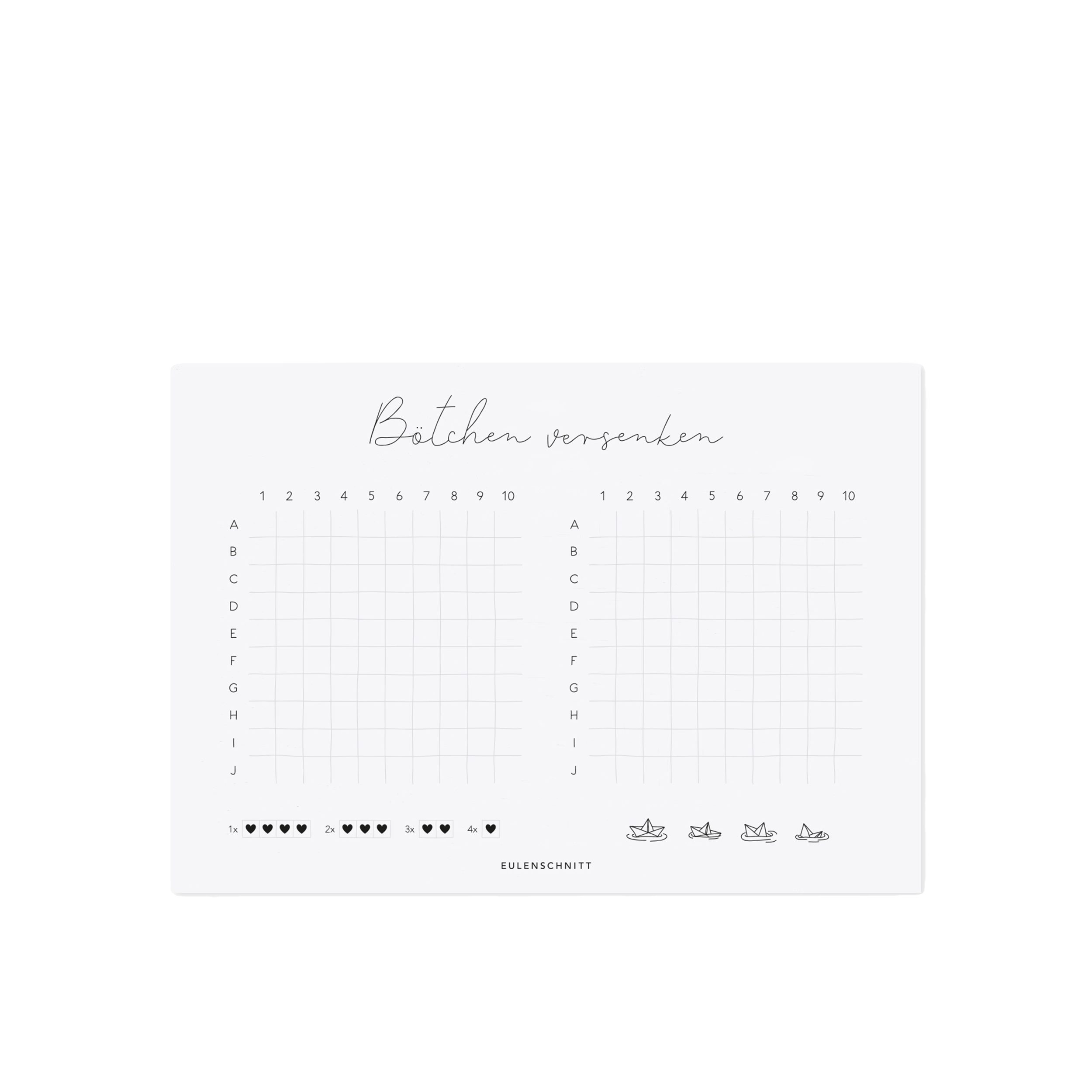 Für alle Seefahrer und Strategen da draußen ist unser Bötchen versenken Spielblock die ideale Wahl. Wir haben das traditionelle Schiffe versenken-Spiel neu interpretiert und ihm unsere einzigartige Note hinzugefügt.