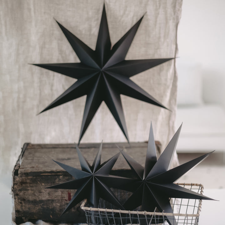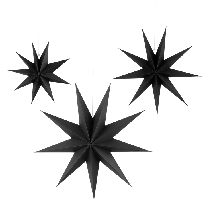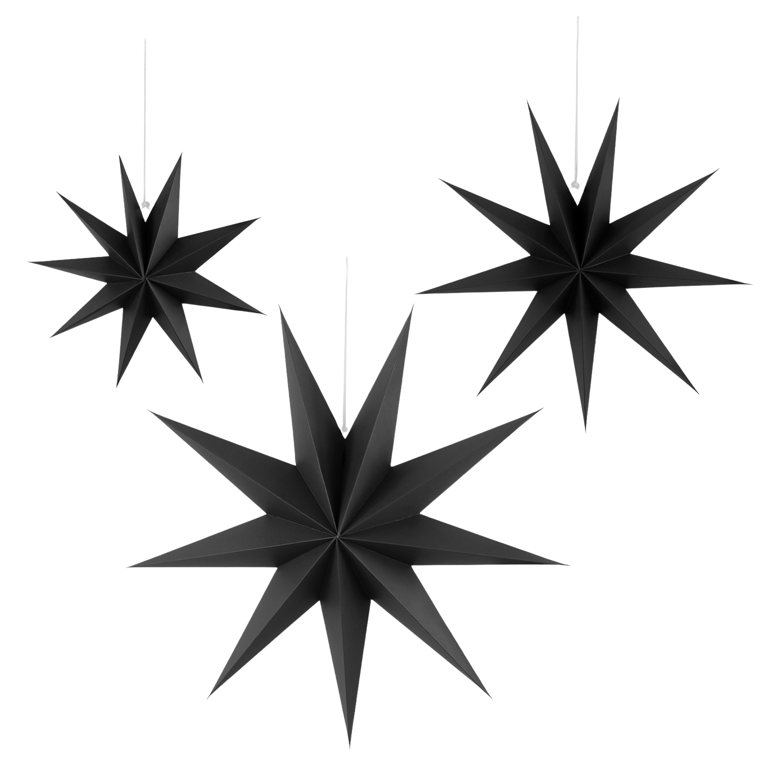 Zaubere winterliche und weihnachtliche Stimmung in dein Zuhause mit unseren neuen Papiersternen im 3er Set schwarz.