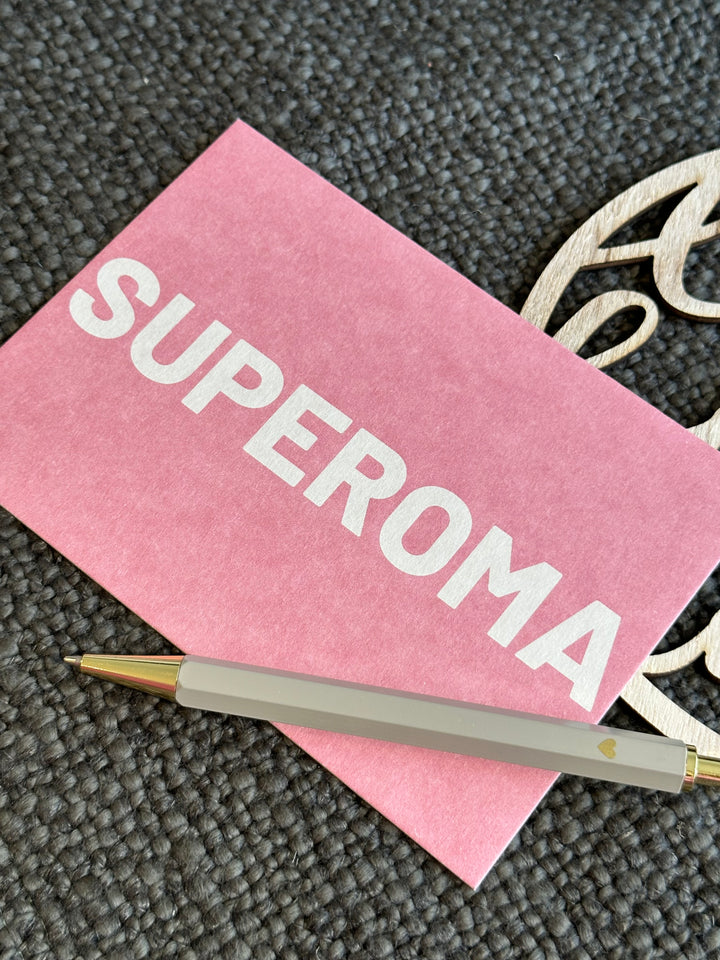 Hole unserer SUPEROMA mit dieser Postkarte ein Stück Dankbarkeit und Liebe in dein Leben. Sie hat nicht nur beeindruckende Superkräfte, sondern auch eine unendliche Liebe zu teilen. Danke, dass du immer für uns da bist!