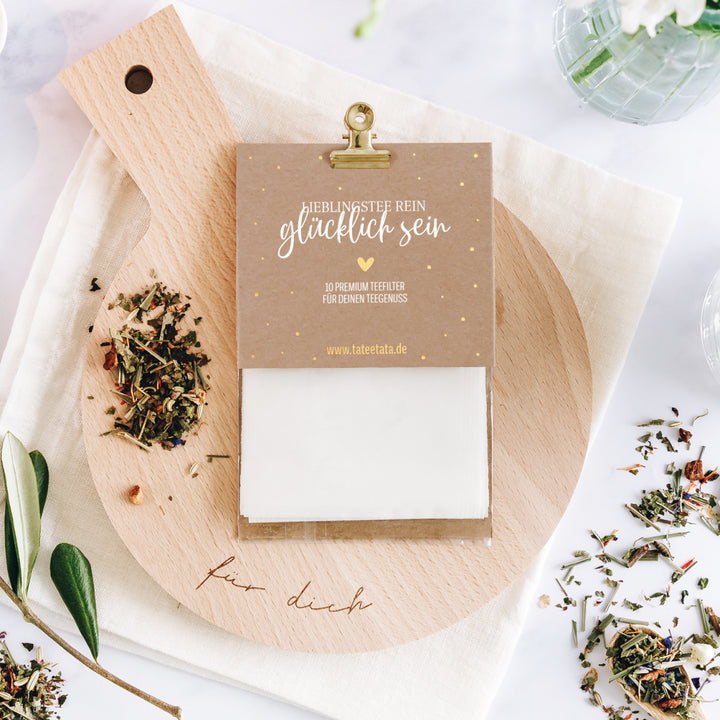 Wenn du dir etwas Gutes tun willst und einen Moment mit deinem Lieblingstee genießen möchtest… dann ist es Zeit für diese ganz besonderen Teefilter. Dein Tee kann sich perfekt entfalten, der Geschmack wird durch keine störenden Stoffe beeinflusst und es bleiben keine Rückstände der Teemischung in der Tasse. Die Teefilter werden nachhaltig in Deutschland produziert, aus hauchzartem Papier für den vollen Teegenuss und sind vollständig kompostierbar. Das hast du dir verdient.