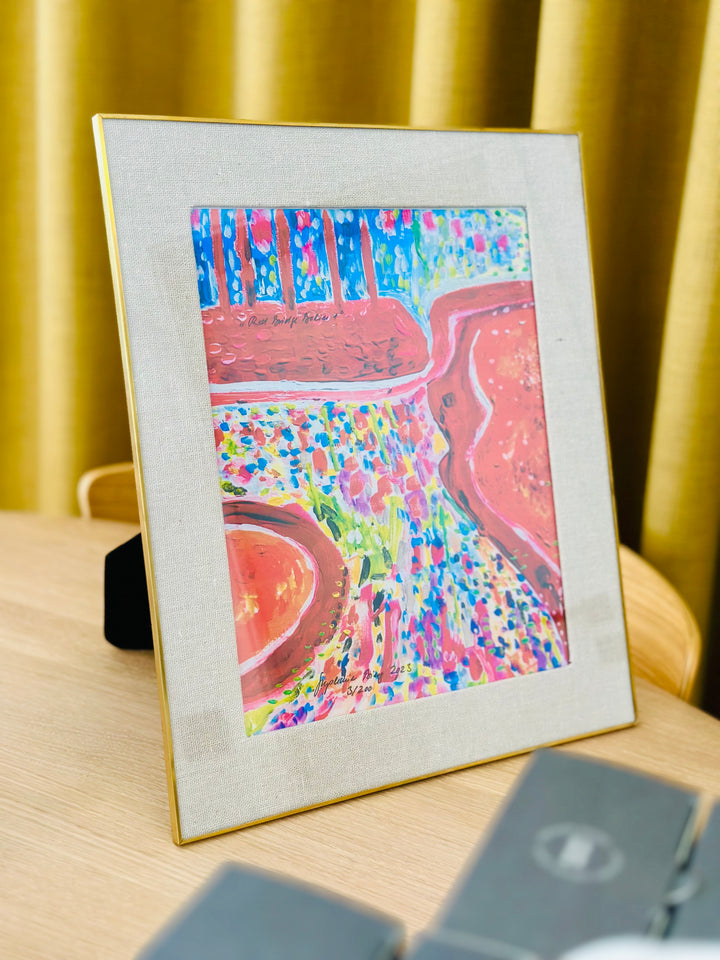 Erleben Sie die faszinierende Farbwelt von Stephanie Bing in dieser hochwertig gerahmten Reproduktion ihres expressiven Diptychons. Mit leuchtenden Grüntönen, lebendigem Rot und fein abgestimmten Komplementärfarben entführt das Werk in eine vibrierende Landschaft voller Tiefe, Licht und Atmosphäre.
