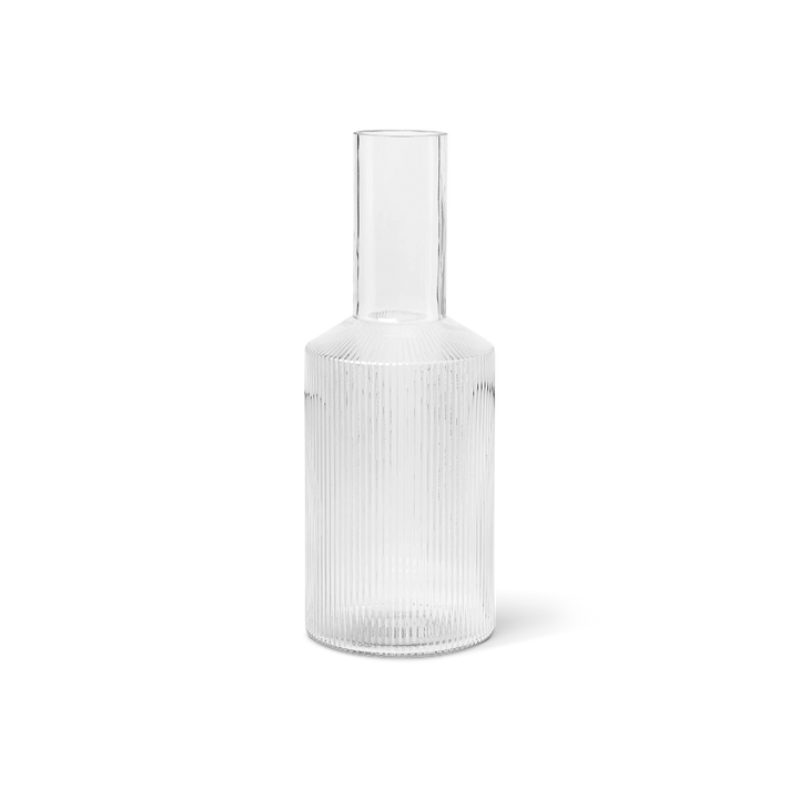 Diese praktische und schöne mundgeblasene Karaffe mit ihrer geriffelten Oberfläche bietet eine moderne Optik. Füllen Sie sie mit Wasser, Saft oder Ihrem Lieblingsgetränk, und servieren Sie das Getränk in den dazu passenden Gläsern.