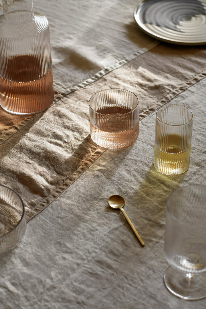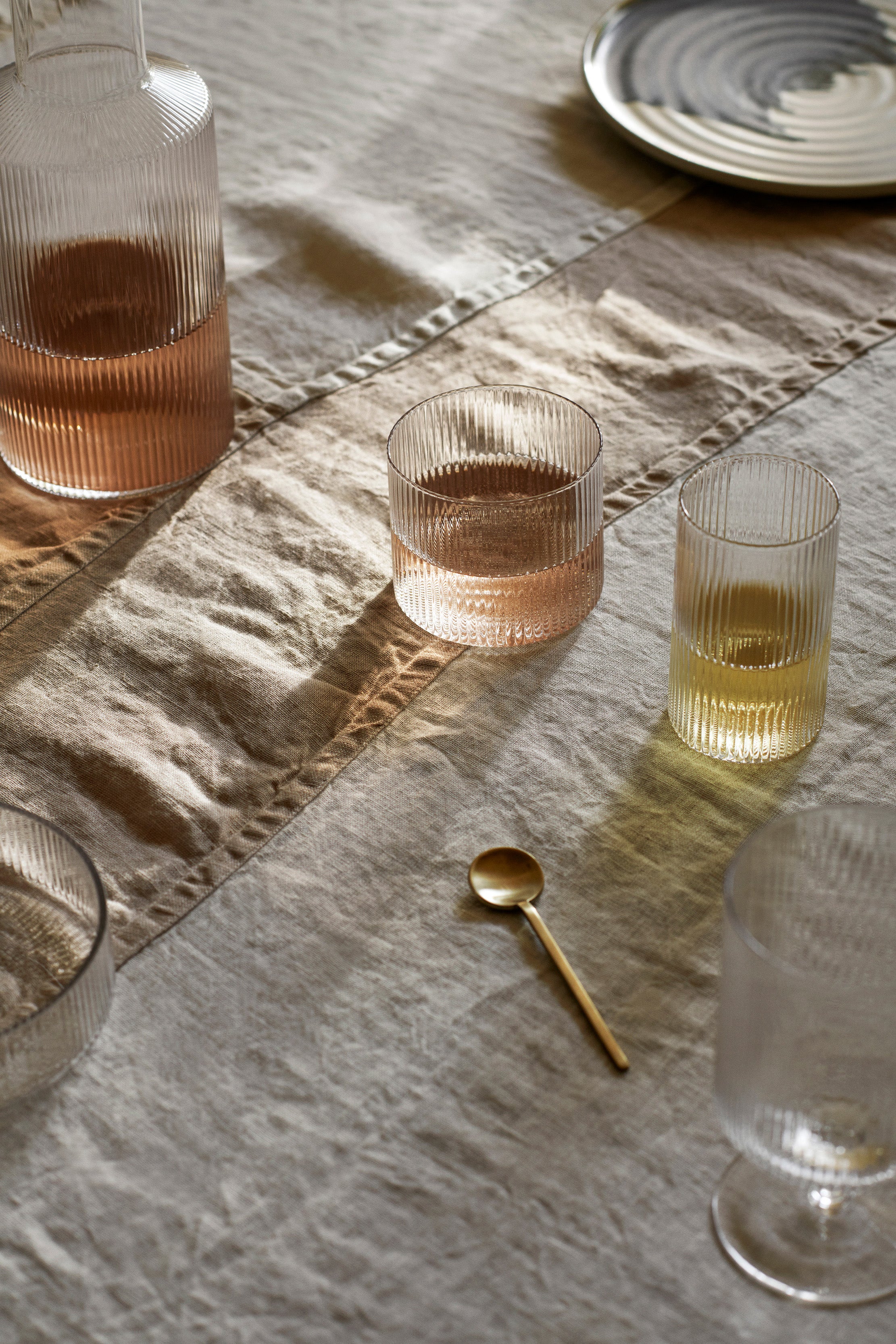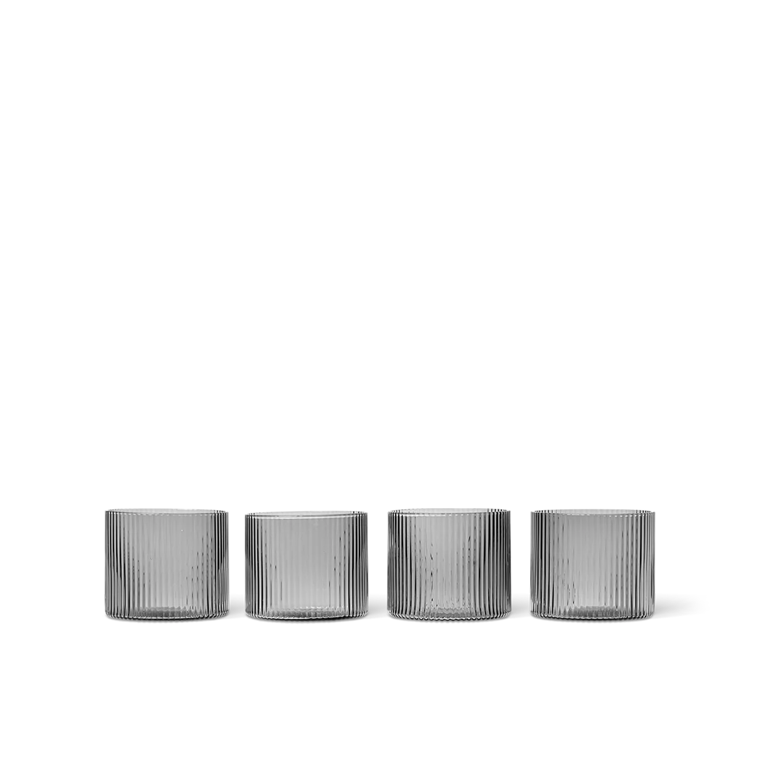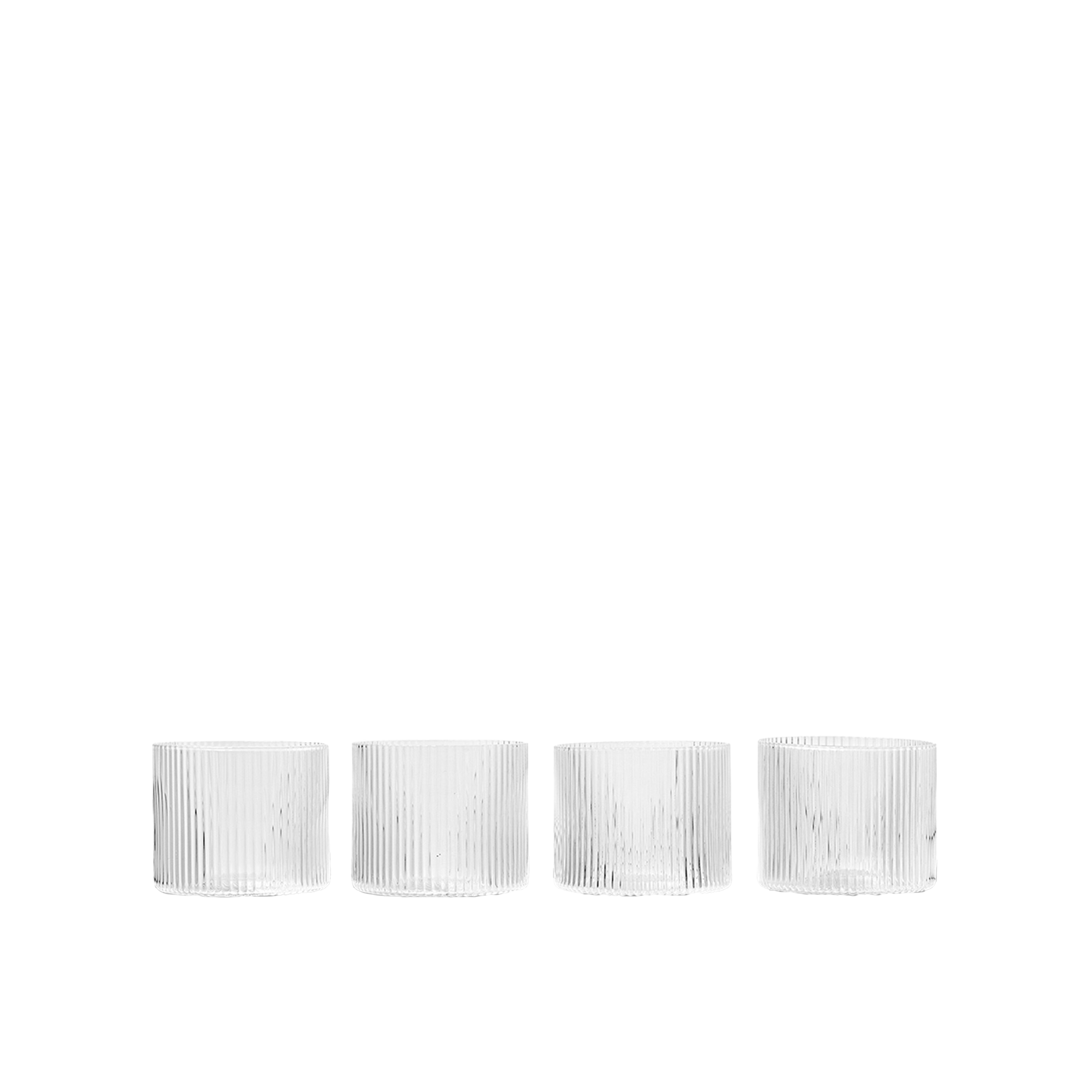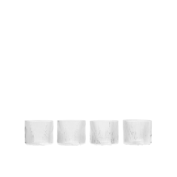 Diese niedrigen, mundgeblasenen Gläser mit ihrer unverwechselbaren, schön geriffelten Oberfläche kommen im Viererset. Die vertikalen Linien verleihen der schlichten, klassischen Form eine ausdrucksstarke Raffinesse und die Gläser eignen sich perfekt für das zwanglose Abendgedeck.