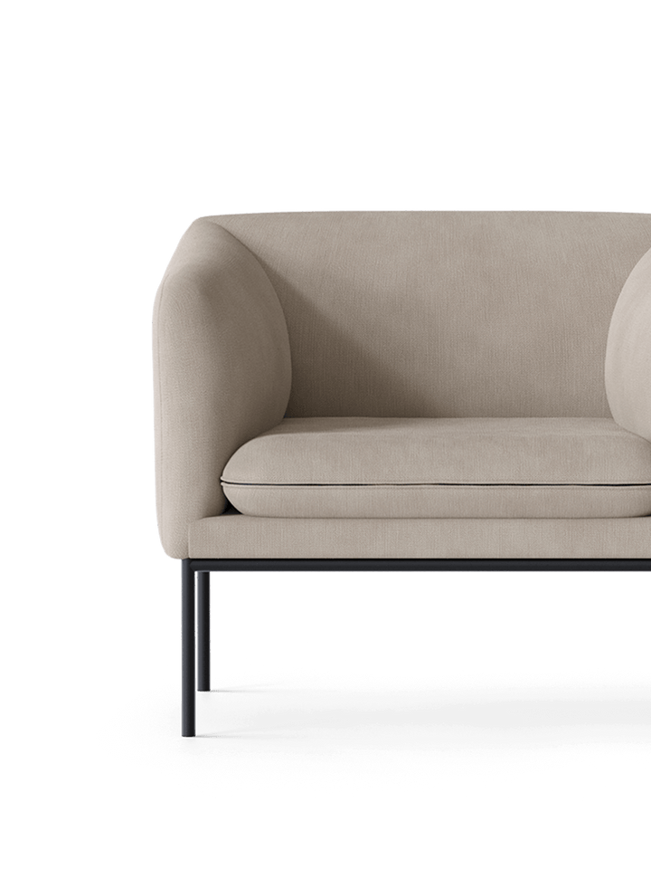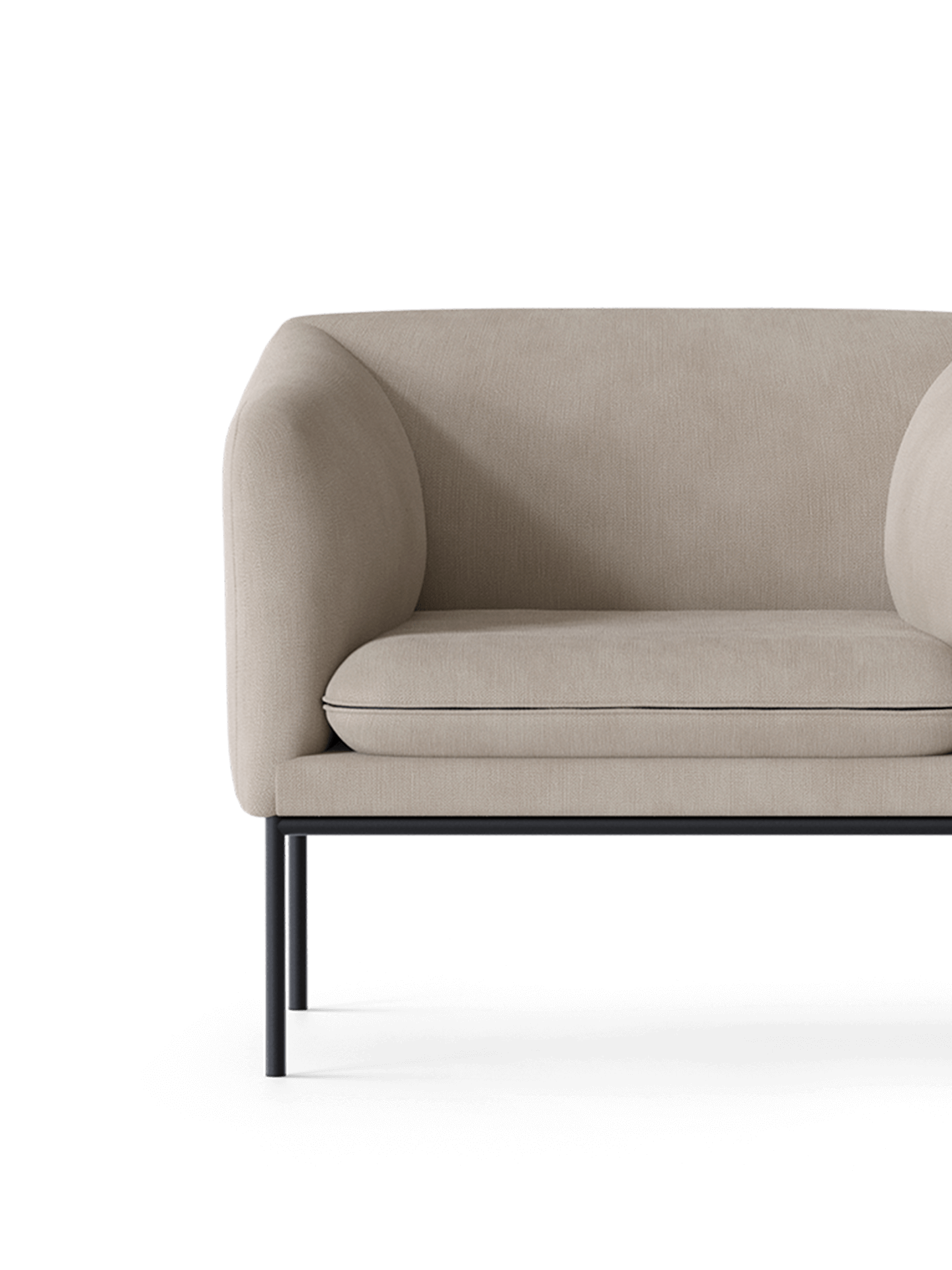 Dieser elegante Sessel kombiniert eine klare, skulpturale Form mit weich abgerundeter Innenpolsterung. Das pulverbeschichtete Stahlgestell und die filigranen Beine verleihen ihm einen zeitlosen, leichten Look. Der Baumwoll-Leinen-Bezug überzeugt durch seine natürliche Farbe und angenehme Struktur.