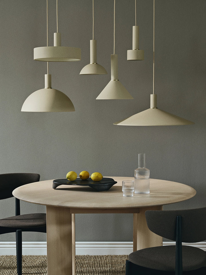 Dieses elegante Element bildet das Kernstück der COLLECT Lighting-Serie. Diese lange Pendelleuchte kann entweder nur mit einer dekorativen Glühbirne oder mit einem der Lampenschirme der Serie verwendet werden, um den Raum ganz nach deinem Geschmack und deiner Stimmung zu beleuchten.