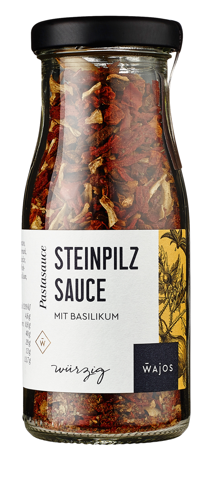 Diese Mischung kombiniert aromatisches Basilikum mit dem edlen Geschmack frischer Steinpilze. Mit feinem Olivenöl passt die Steinpilz Sauce nicht nur perfekt zu Pasta, sondern auch zu Kartoffelgerichten und Geflügel. Auch lecker: Anstelle Olivenöl mit Sahne zu einer cremigen Sauce für Spaghetti anrühren.