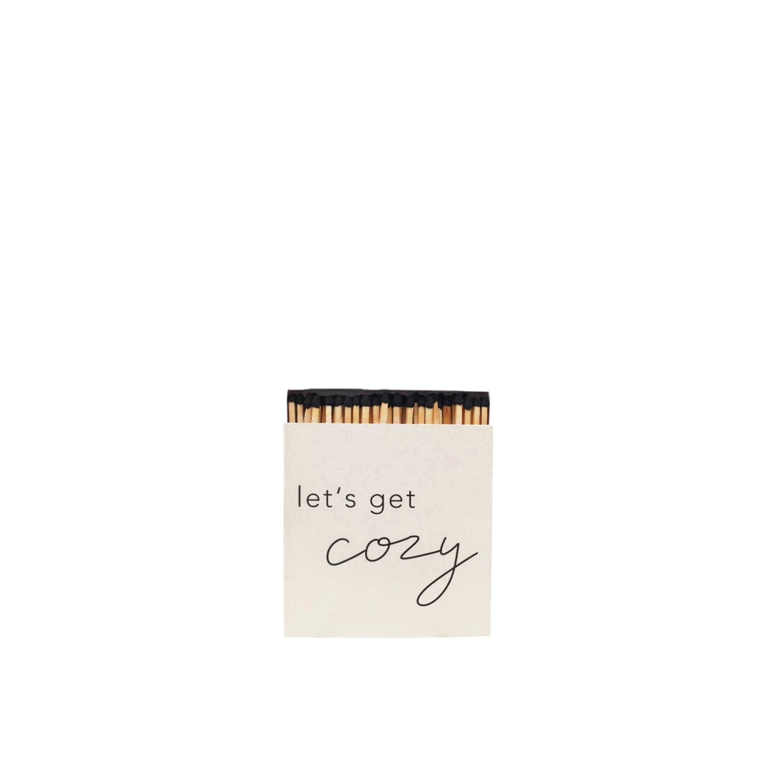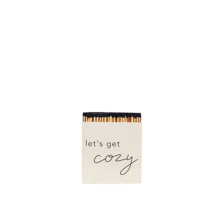 Für eine ganz gemütliche Stimmung in deinem Zuhause – unsere Streichhölzer Cozy. Sie haben ein wundervoll schlichtes Design und eine edle Blindprägung. Die eine Seite ziert der Spruch „let's get cosy“ und die andere Seite ein kleines Herz. Die Streichhölzer haben einen schwarzen Zündkopf.