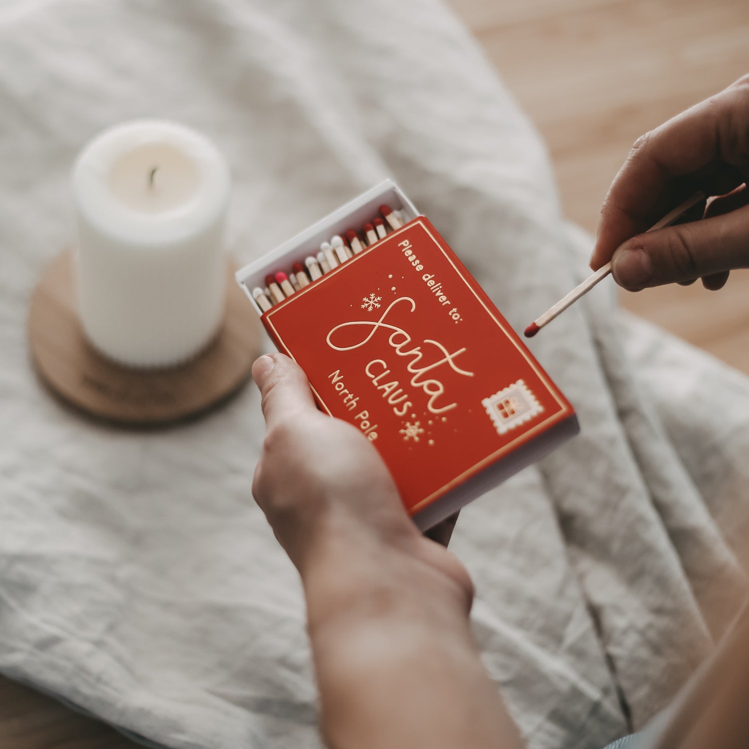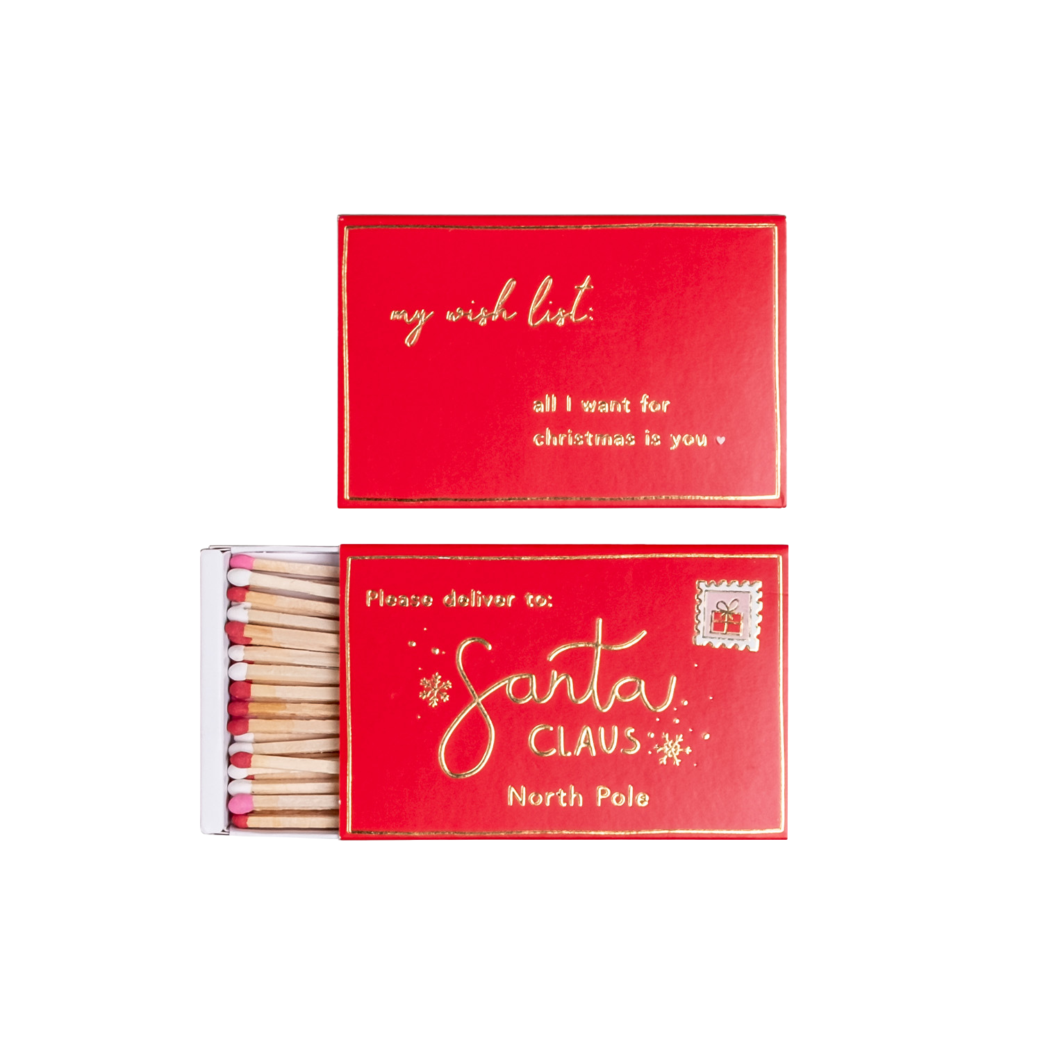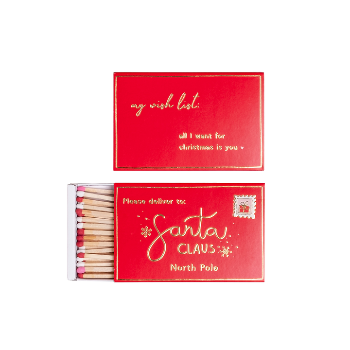 Unsere Streichhölzer Santa Claus zaubern nicht nur Wärme, sondern auch festliche Vorfreude in dein Zuhause. Die liebevoll gestaltete Schachtel in weihnachtlichem Rot erinnert an einen Brief an Santa Claus – perfekt bis ins Detail!