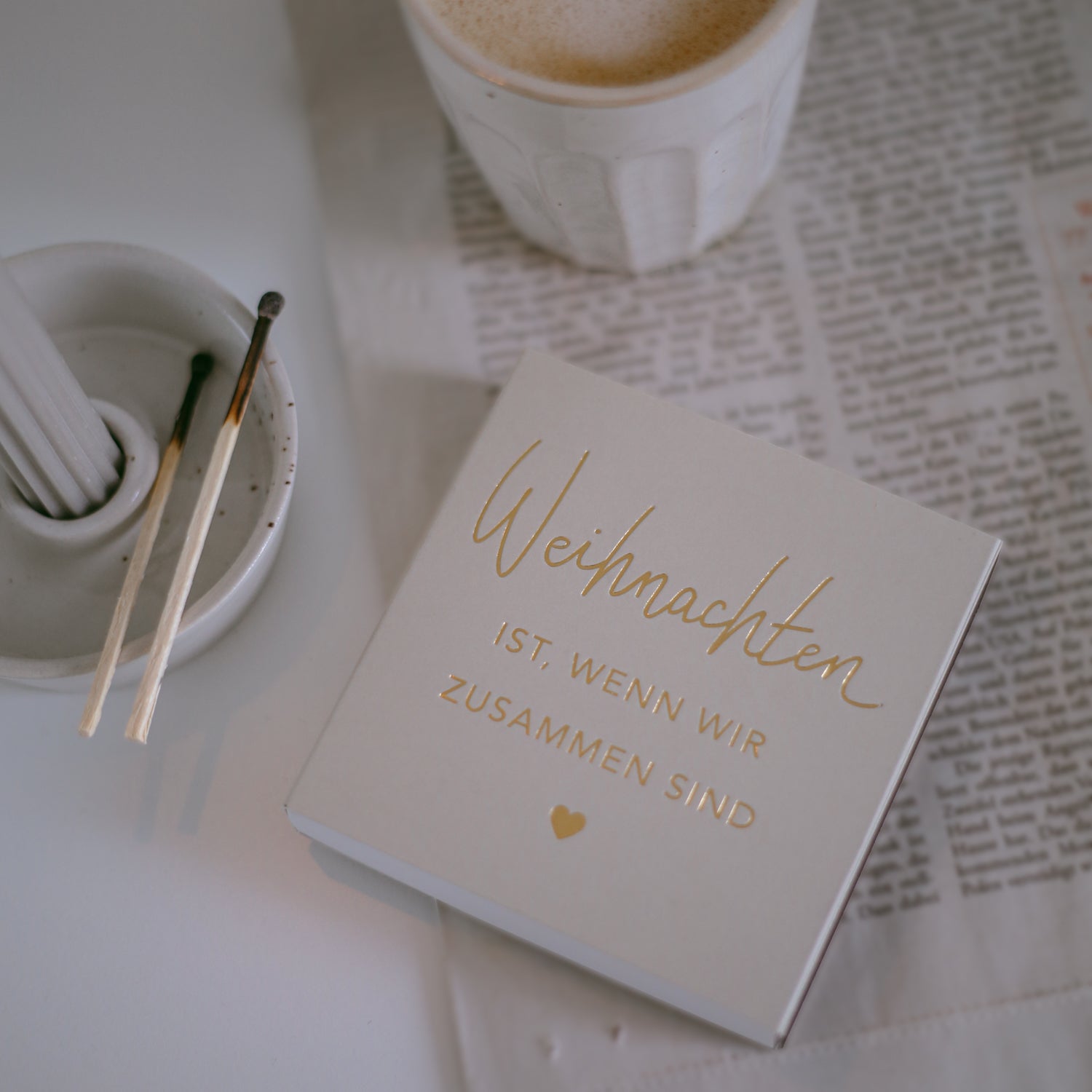 Das Anzünden der Kerzen am Adventskranz macht mit unseren Streichhölzern Weihnachten noch mehr Freude. Mit dem Spruch "Weihnachten ist, wenn wir zusammen sind" sind sie außerdem das perfekte Geschenk für jede liebe Person.