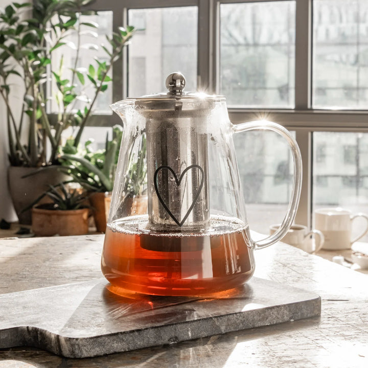 Entdecke den Zauber eines perfekt gebrühten Tees mit unserer eleganten Teekanne Herz, die ein großes schwarzes Herz in ihrem Design präsentiert. Diese Teekanne ist nicht nur ein optisches Highlight, sondern auch ein praktisches Accessoire für alle Tee-Liebhaber.