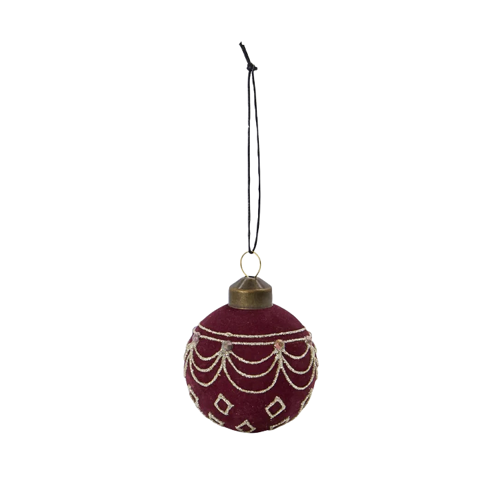 Bei der Weihnachtsdeko geht einfach nichts über Christbaumkugeln. Velour ist eine kleine Weihnachtskugel, die von House Doctor designt wurde. Sie kommt in einem klassischen Burgunderton daher und wird mit einem feinen Glitzermuster und einer samtig-weichen Oberfläche aus Flock abgerundet.